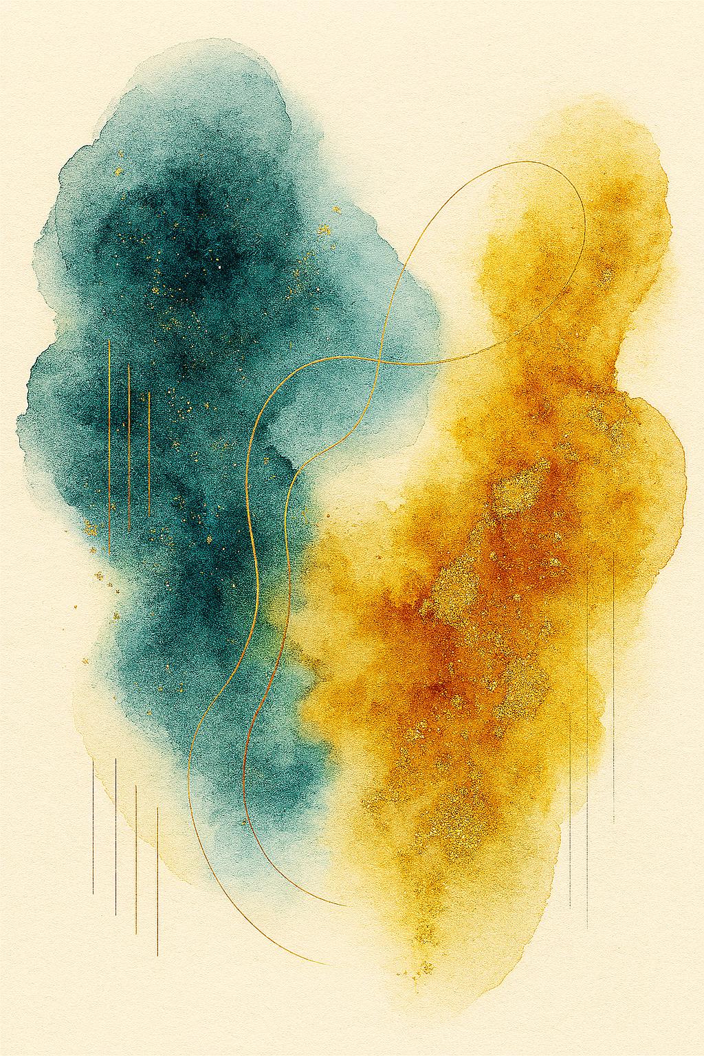The Hybrid Collection is a dialogue between pigment and pixel, where watercolor’s fluidity meets digital precision. Each piece carries the trace of process—organic washes dissolving into geometric overlays, shimmering gold textures woven through layers of memory and resonance. This collection preserves not only the finished image but the journey of its making, inviting viewers into a space where emotion, ritual, and innovation converge.
