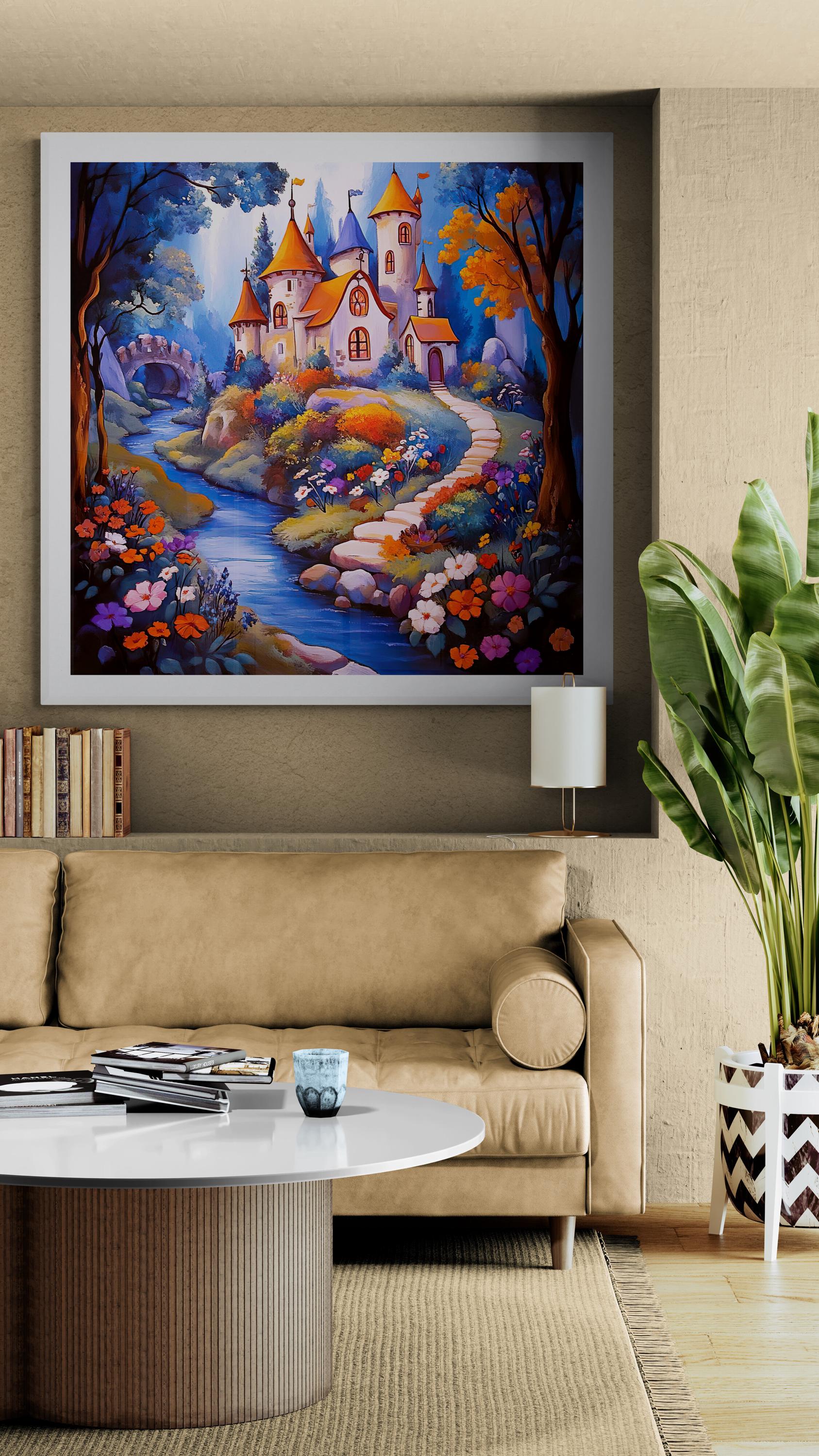 Imagine a world where enchanted homes stand tall, exuding vibrant and whimsical charm that seamlessly melds with their mystical surroundings. These dwellings gracefully tower over delicate, bright flowers that dance in the gentle breeze alongside a meandering azure stream. This magical scene unfolds against a backdrop of fantastical terrains, each stroke of color painted with imaginative precision. These unique abodes seem almost alive, shifting and evolving to harmonize with the whims of their magical environments, creating a truly enchanting and captivating landscape that ignites the imagination. Welcome to a realm where reality and fantasy blend harmoniously, inviting you to explore and revel in the wonder of a truly magical place.
