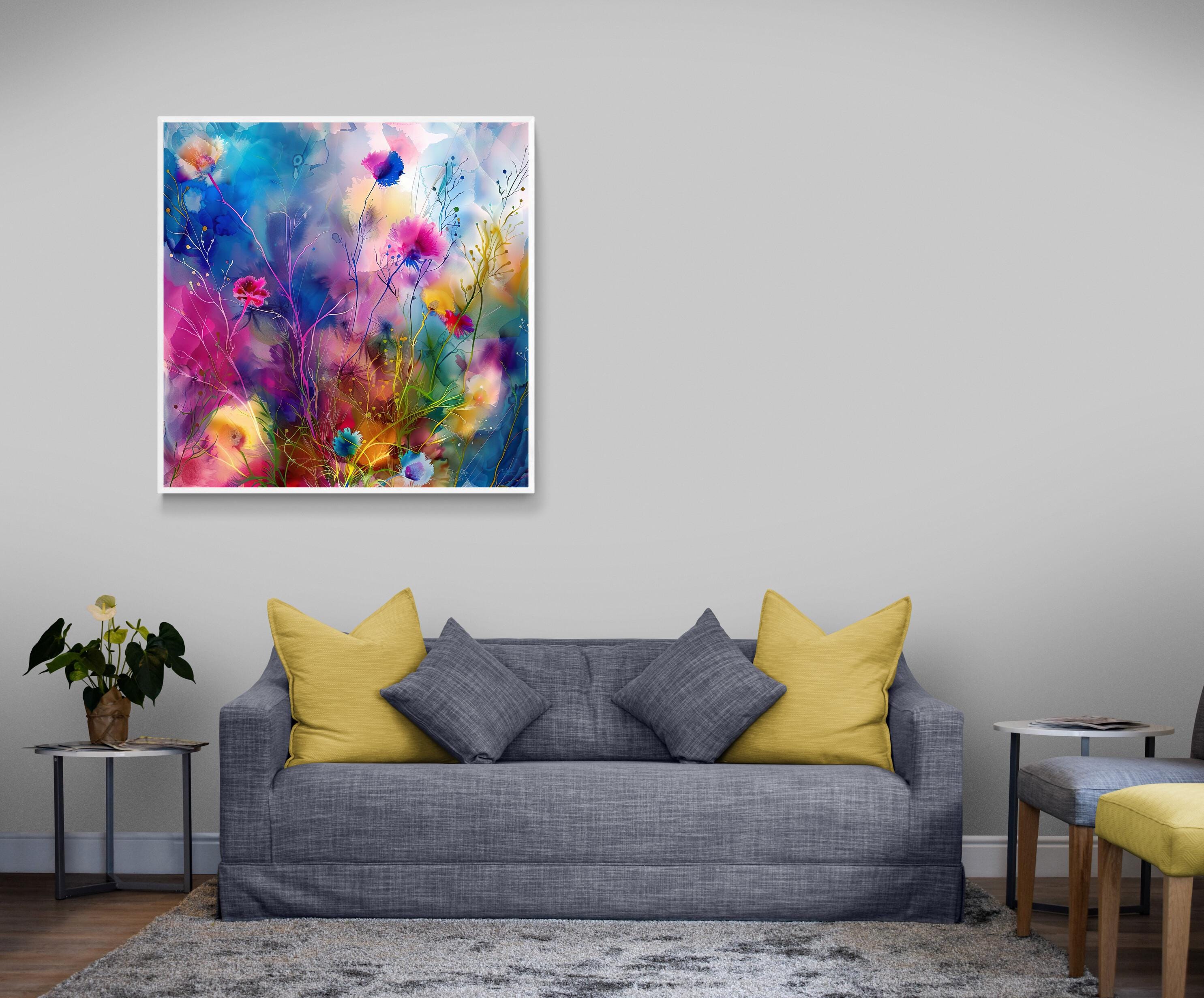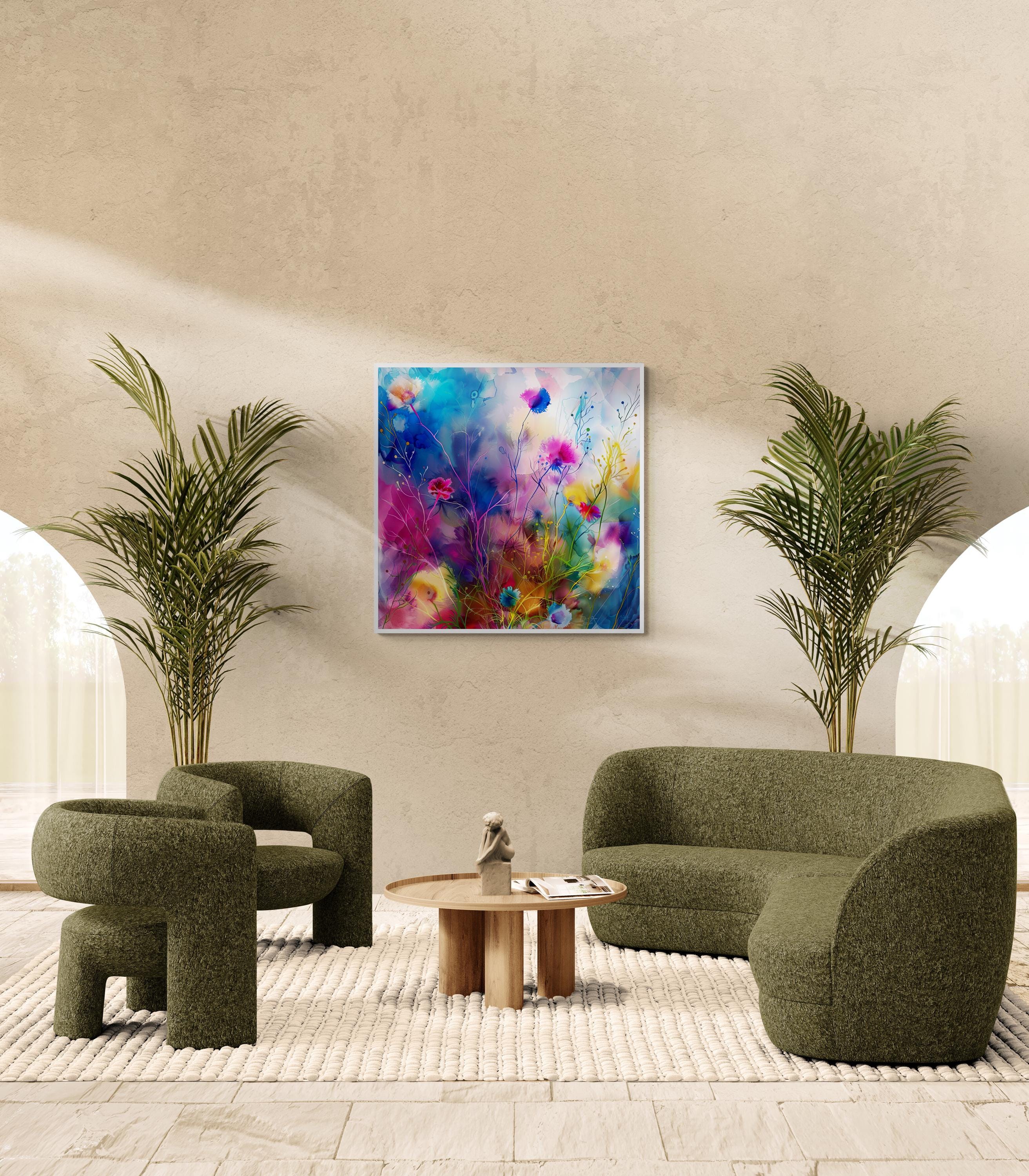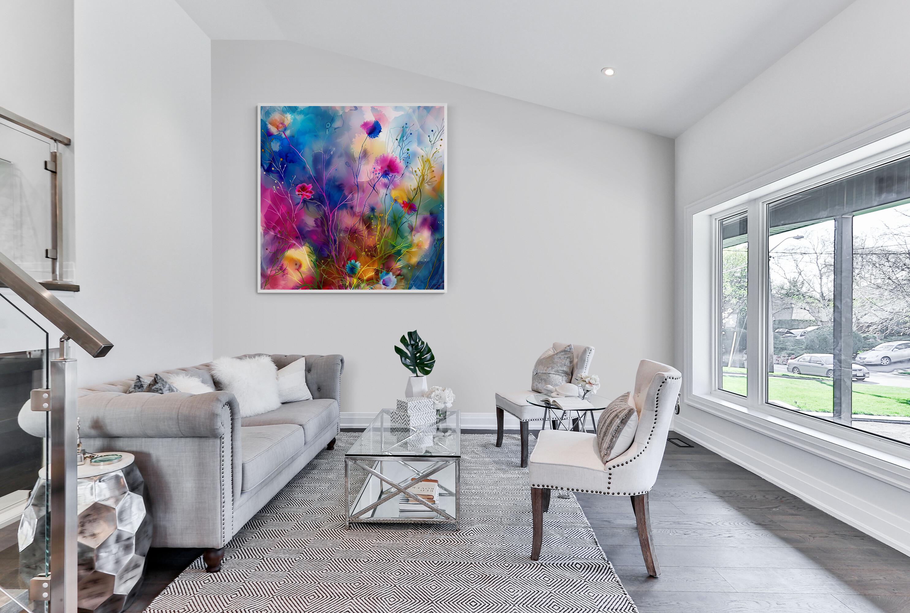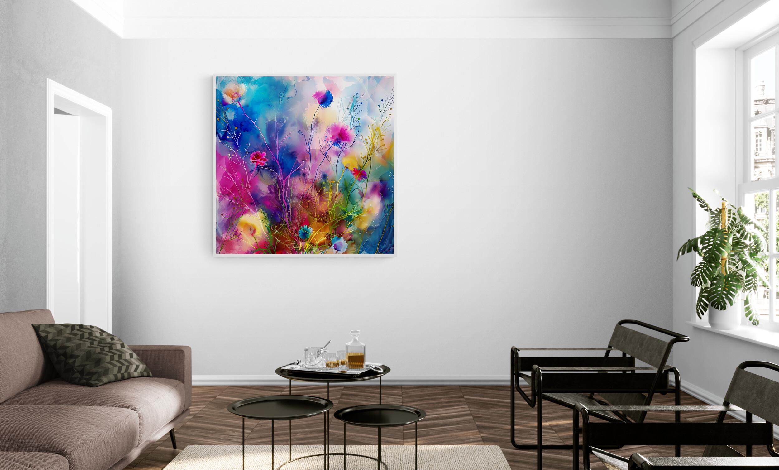 Step into a world where grass flowers come alive in an explosion of color and movement with this stunning abstract depiction. This mesmerising artwork, created in the impressionistic style, is a vibrant representation of nature's beauty, with swirling hues and dynamic forms that dance across the artboard. The bold brushstrokes add a sense of energy and vitality to the composition, making it a captivating piece that exudes liveliness and spirit. Each print from the Extravagant and Fanciful collection is a digital masterpiece, carefully crafted to showcase luminescent accents inspired by the wonders of the natural world. Immerse yourself in the fanciful beauty of this colorful floral print, transformed into an abstract form that captures the essence of creativity and imagination.