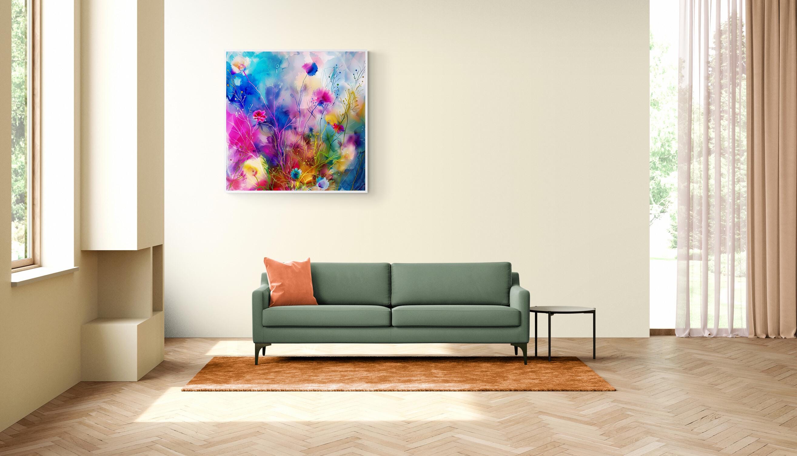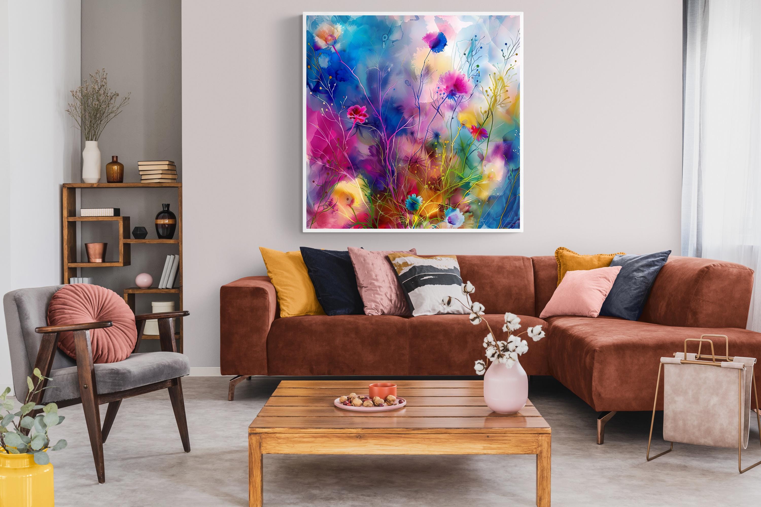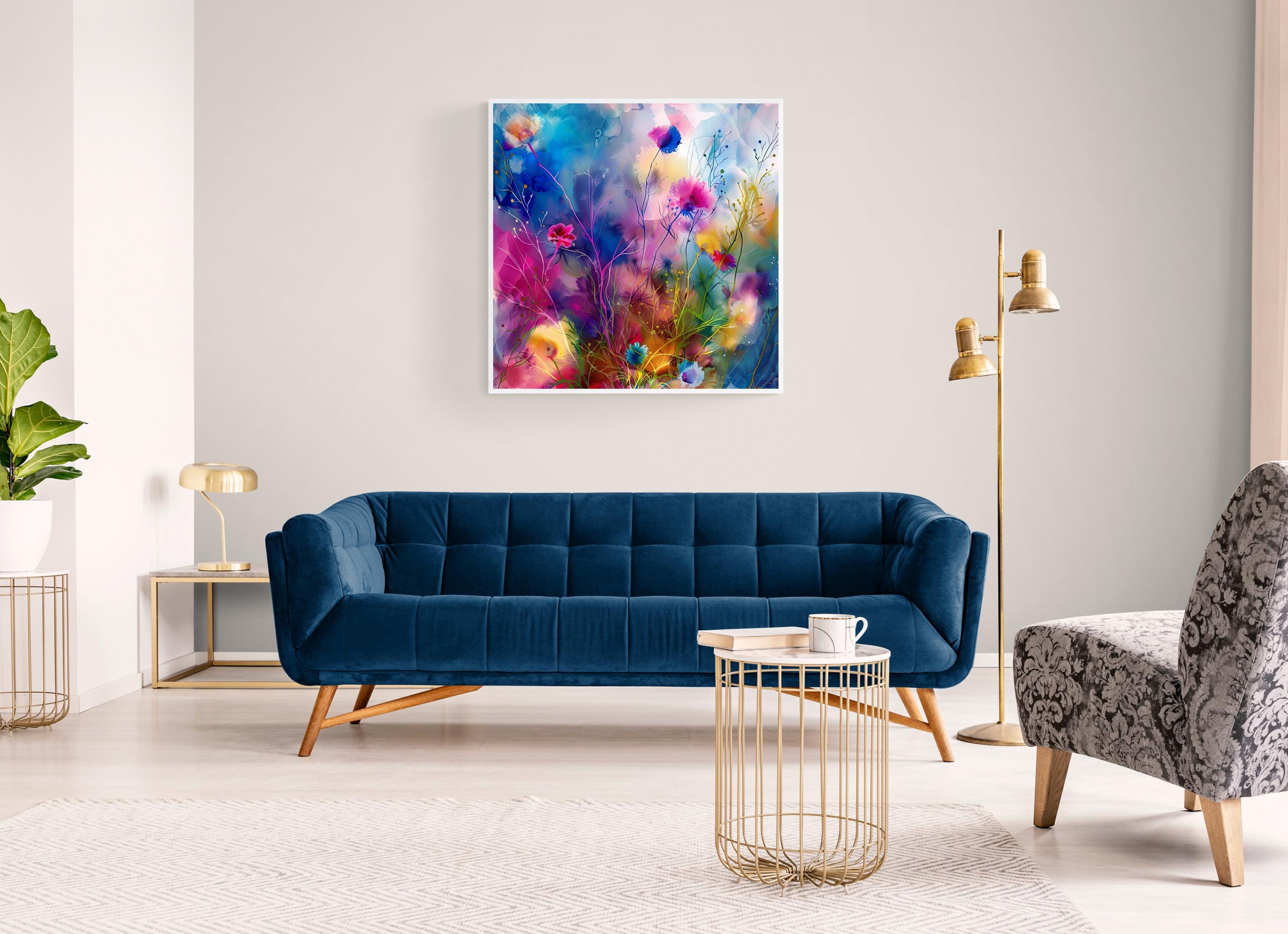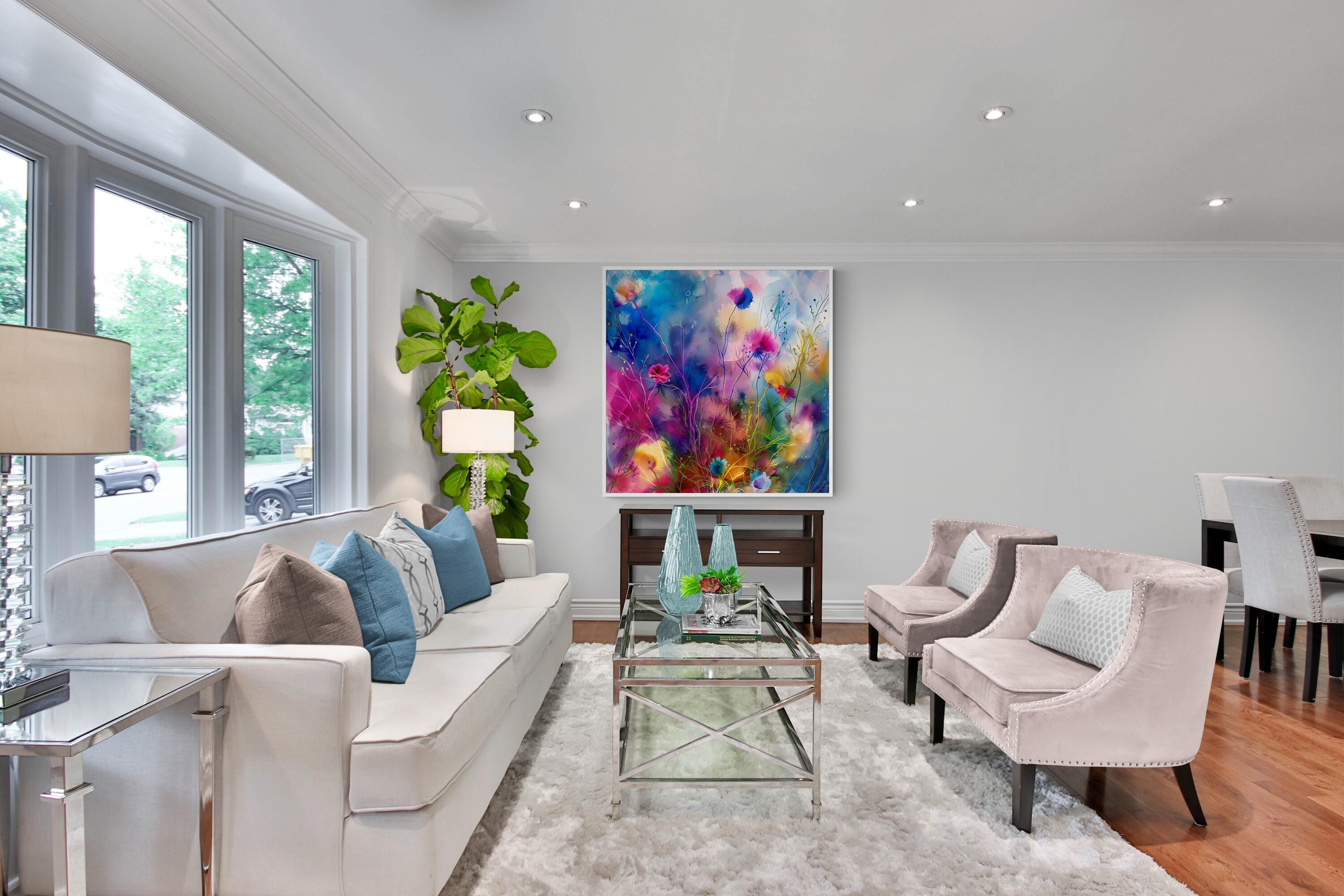 Step into a world where grass flowers come alive in an explosion of color and movement with this stunning abstract depiction. This mesmerising artwork, created in the impressionistic style, is a vibrant representation of nature's beauty, with swirling hues and dynamic forms that dance across the artboard. The bold brushstrokes add a sense of energy and vitality to the composition, making it a captivating piece that exudes liveliness and spirit. Each print from the Extravagant and Fanciful collection is a digital masterpiece, carefully crafted to showcase luminescent accents inspired by the wonders of the natural world. Immerse yourself in the fanciful beauty of this colorful floral print, transformed into an abstract form that captures the essence of creativity and imagination.