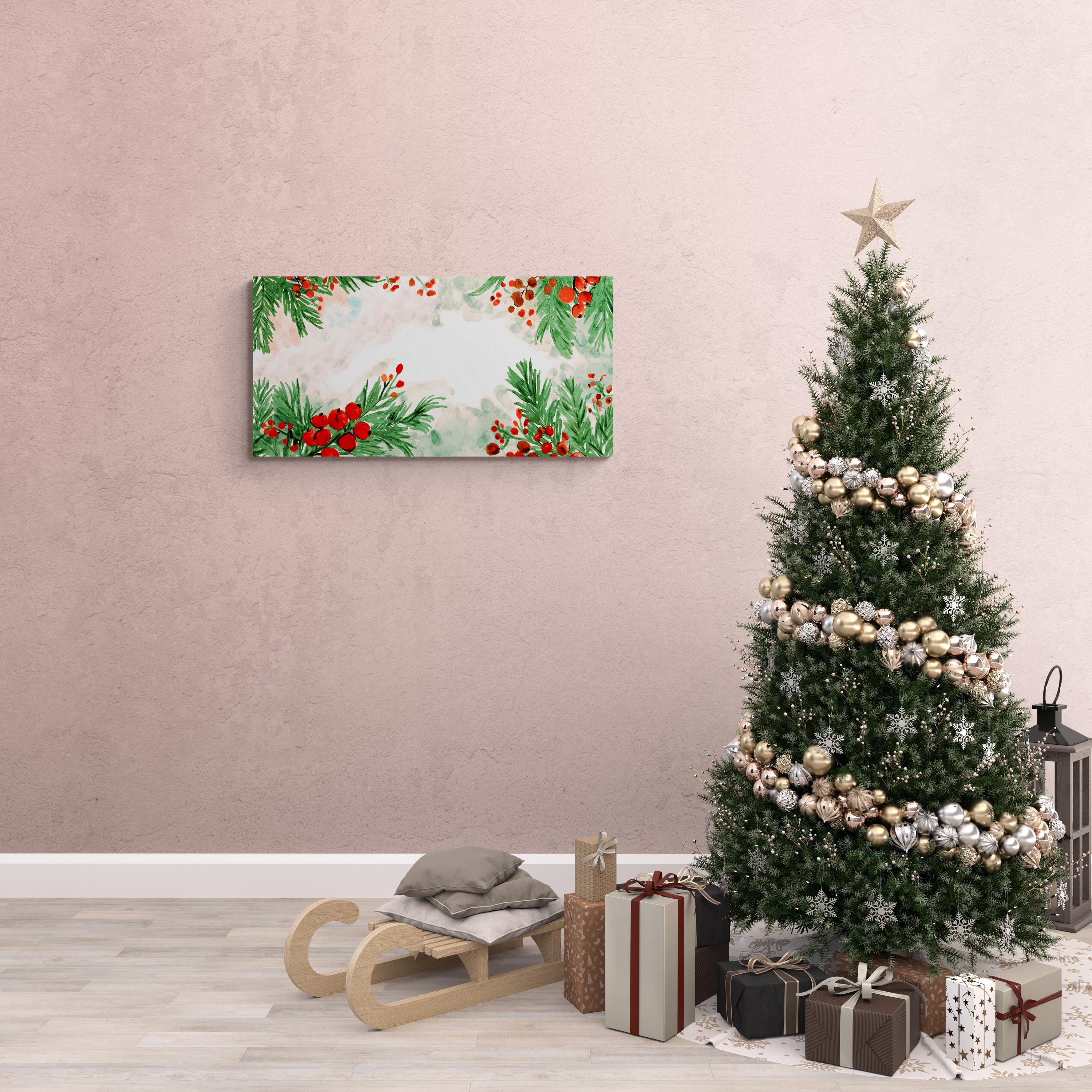 Christmas Berries Watercolor Art, Green Foliage Painting, Holiday Wall Art