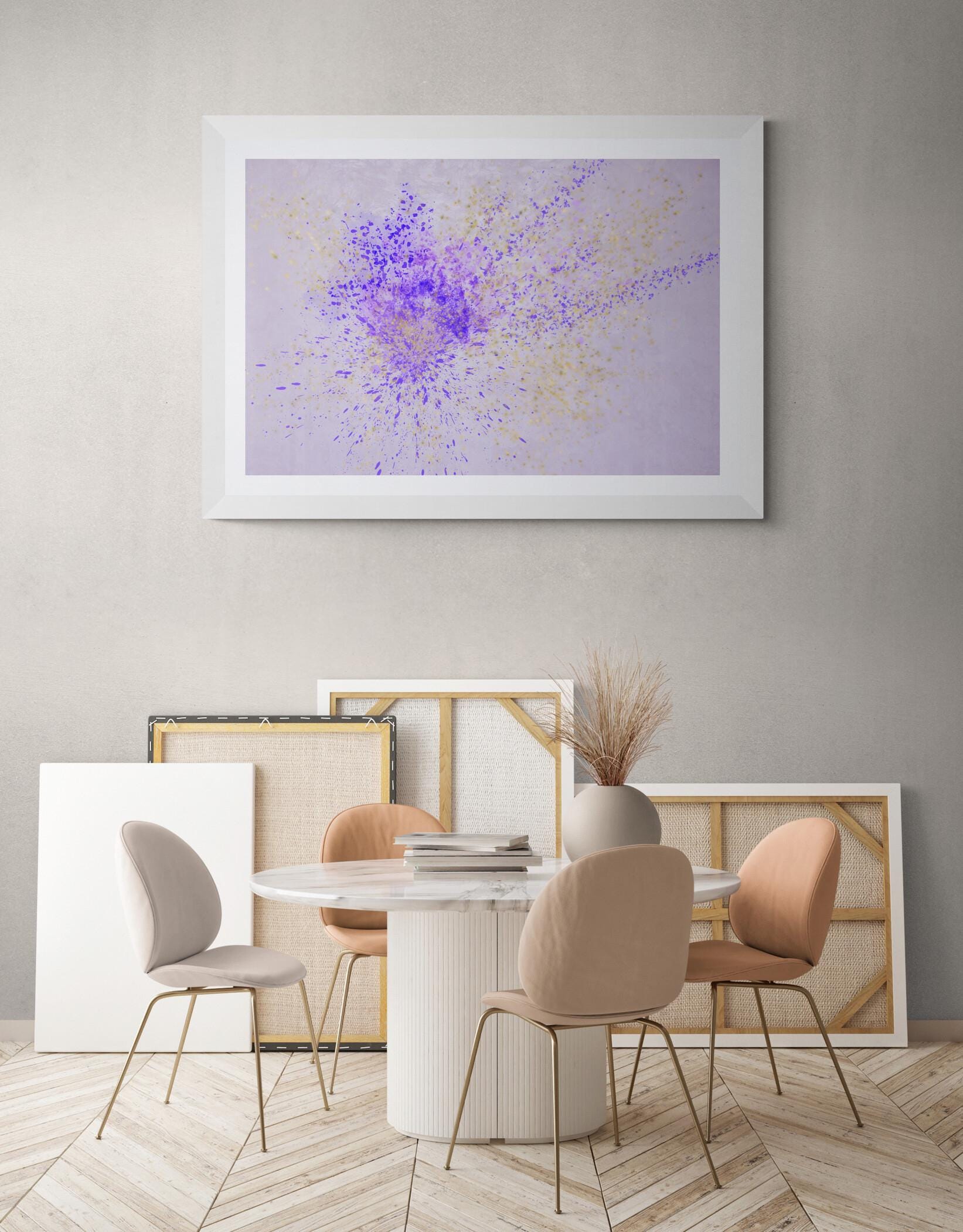 LAVENDER SPRAY captures the essence of a vibrant and energetic painting with its abstract watercolor splash design, a true masterpiece for art enthusiasts. The bold strokes and dynamic movements in various shades of violet create a sense of motion and excitement on the canvas. Set against a soothing lilac background, this artwork evokes a sense of calmness and balance, making it a striking focal point in any space. The fusion of colors and the fluidity of the watercolor technique add depth and character to the overall composition. LAVENDER SPRAY is a visual symphony that invites viewers to immerse themselves in its beauty and explore the emotions it evokes. A perfect choice for those seeking a captivating and unique piece of art to elevate their decor.