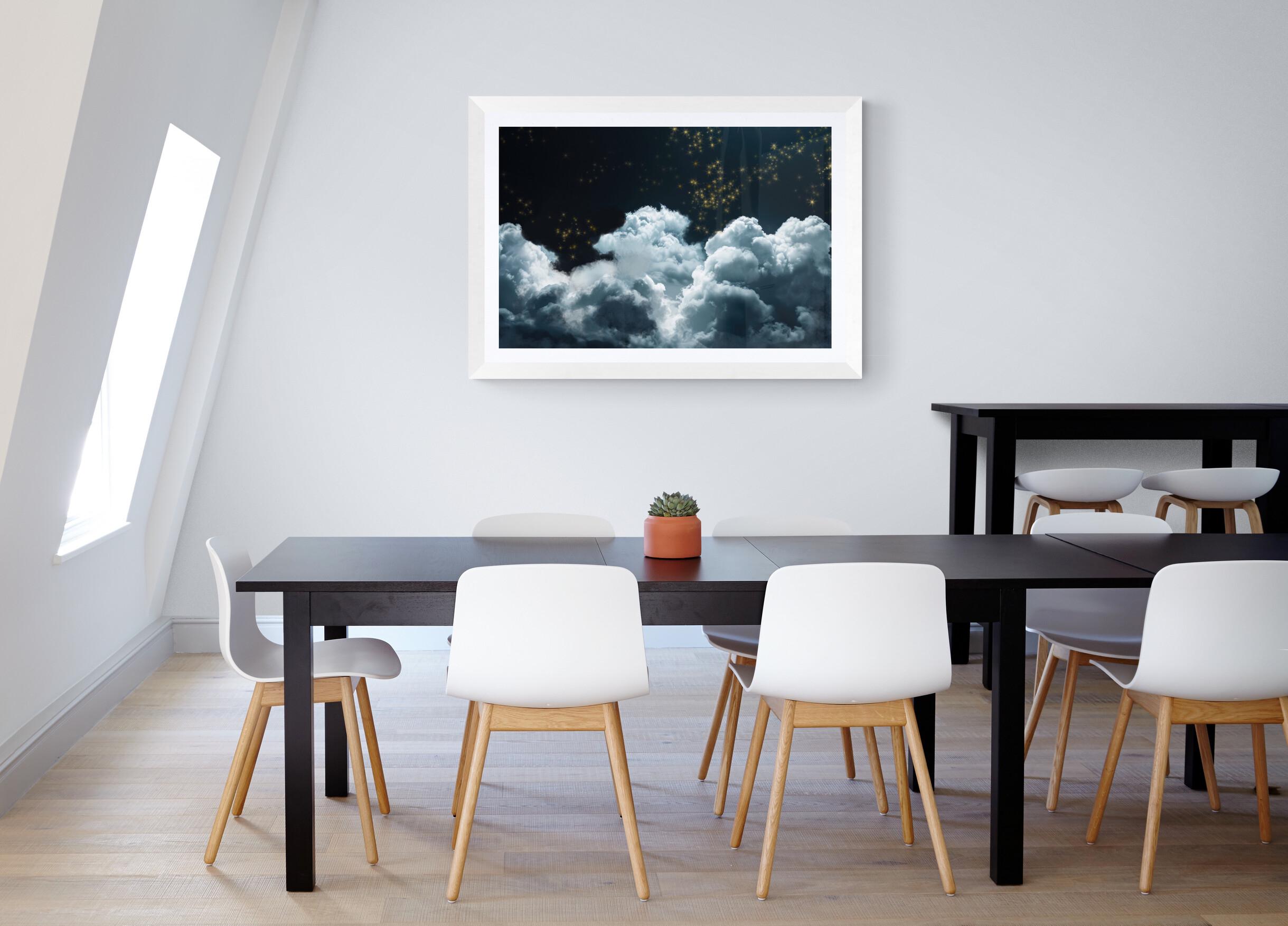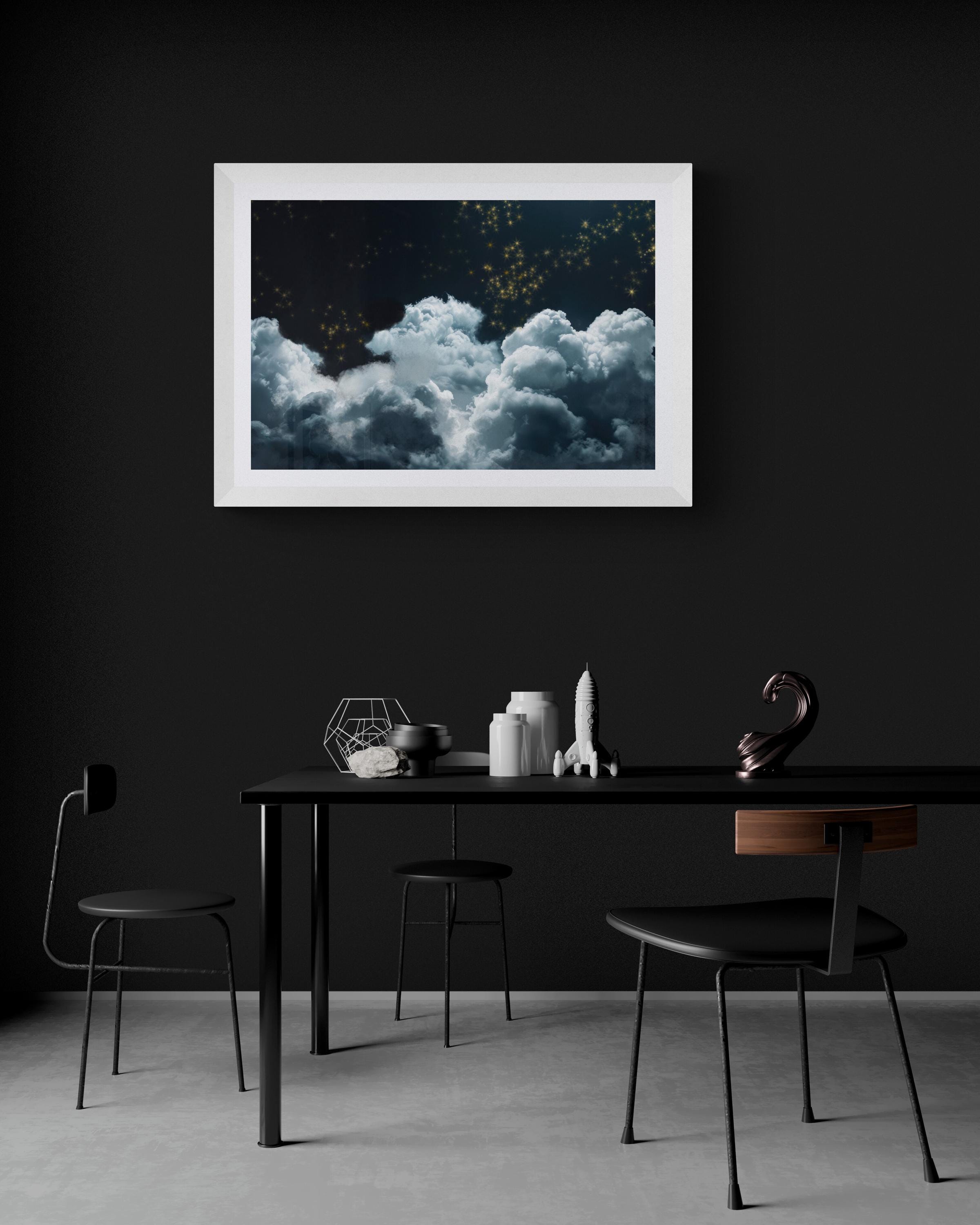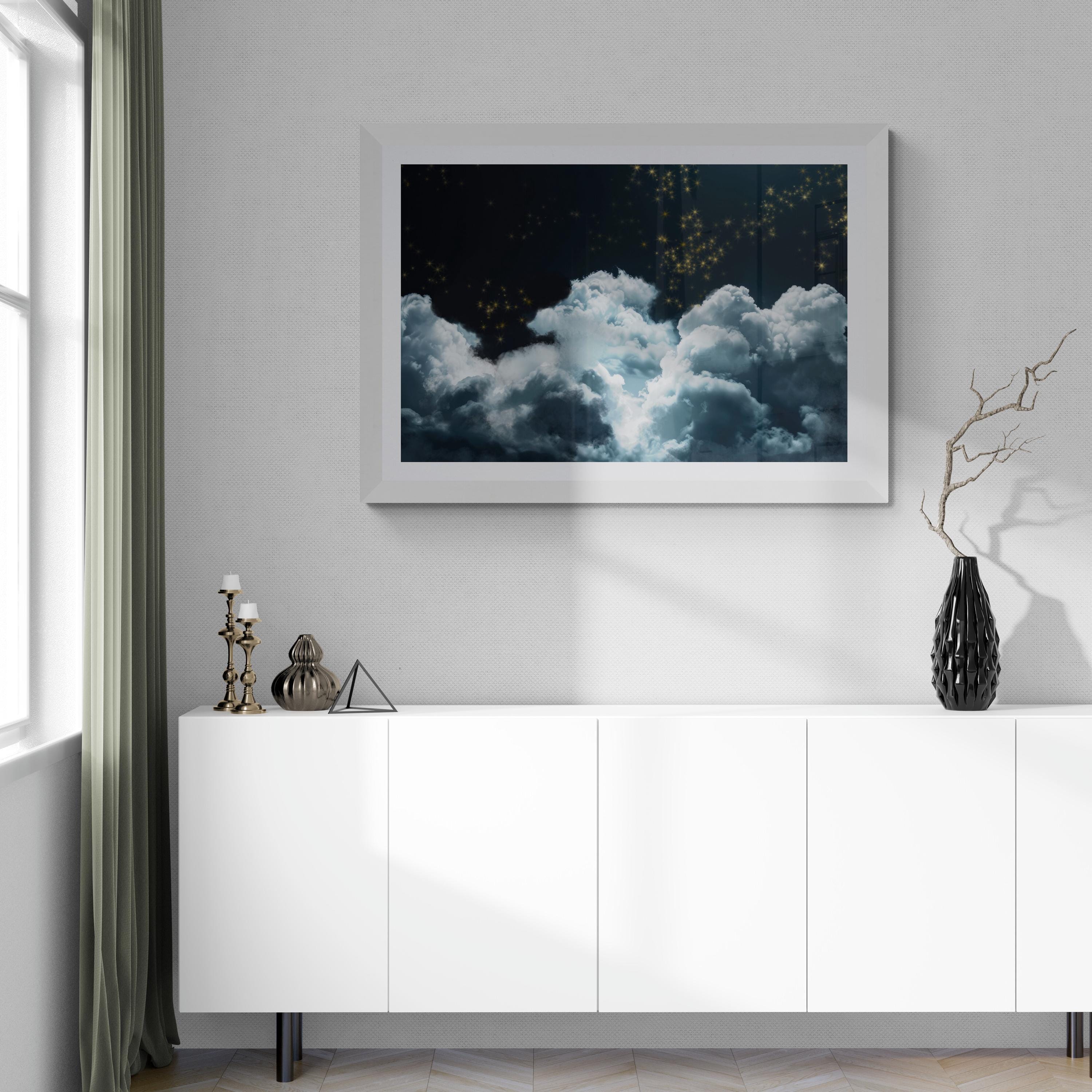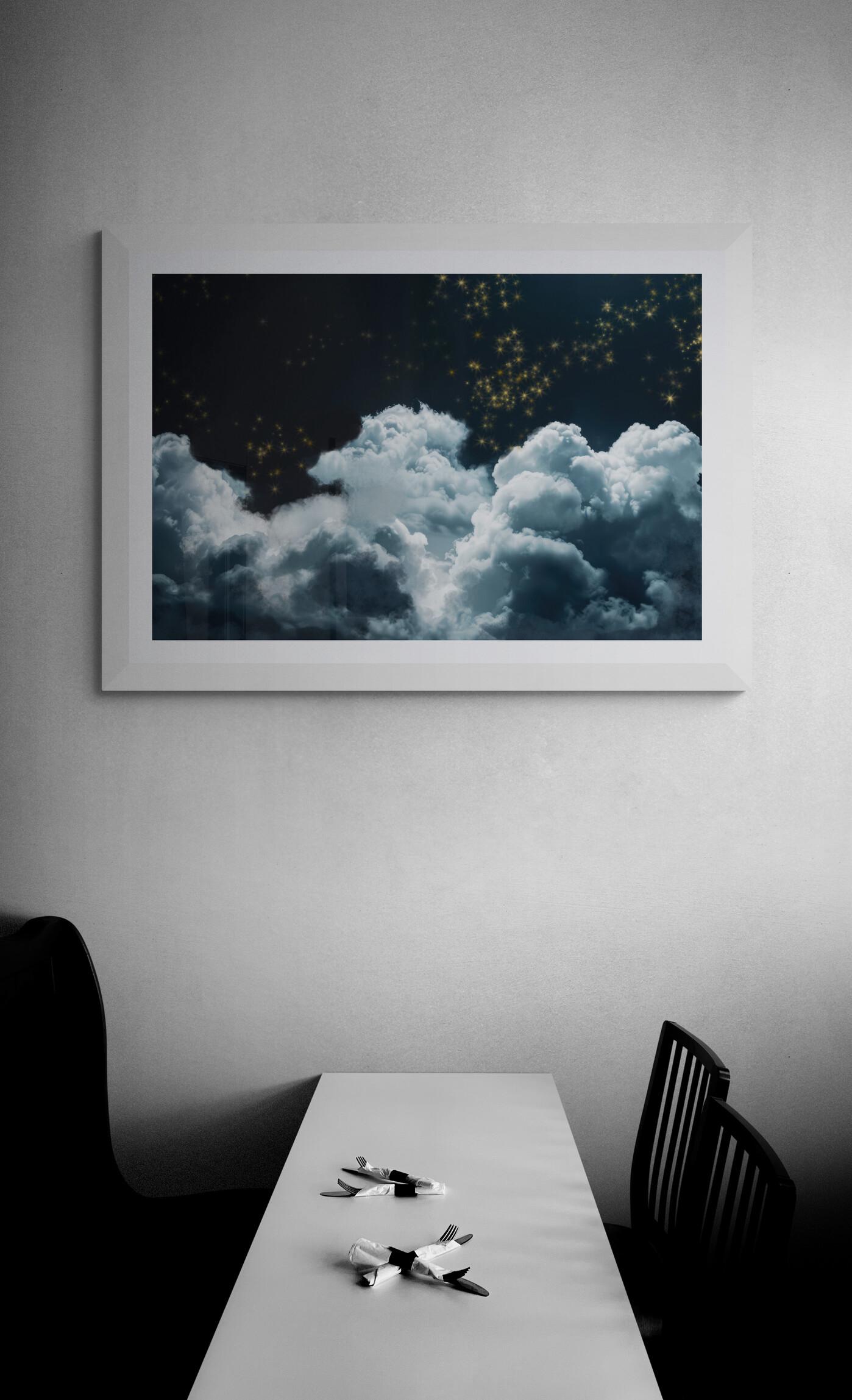 Step into a world of tranquility with the Cumulus Night clouds on a black backdrop. This mesmerising piece invites you to immerse yourself in the serene beauty of a starry night sky captured in artwork. The dreamy clouds exude a sense of calmness and mystery, evoking a feeling of peace and wonder. Displaying this piece in your space allows you to bring a touch of celestial charm indoors, creating a soothing ambiance. Let the beauty of the night sky inspire and relax you as you gaze upon this captivating artwork that promises to elevate your surroundings. Immerse yourself in the enchanting allure of Cumulus Night and let its peaceful aura envelop your space in elegance.
