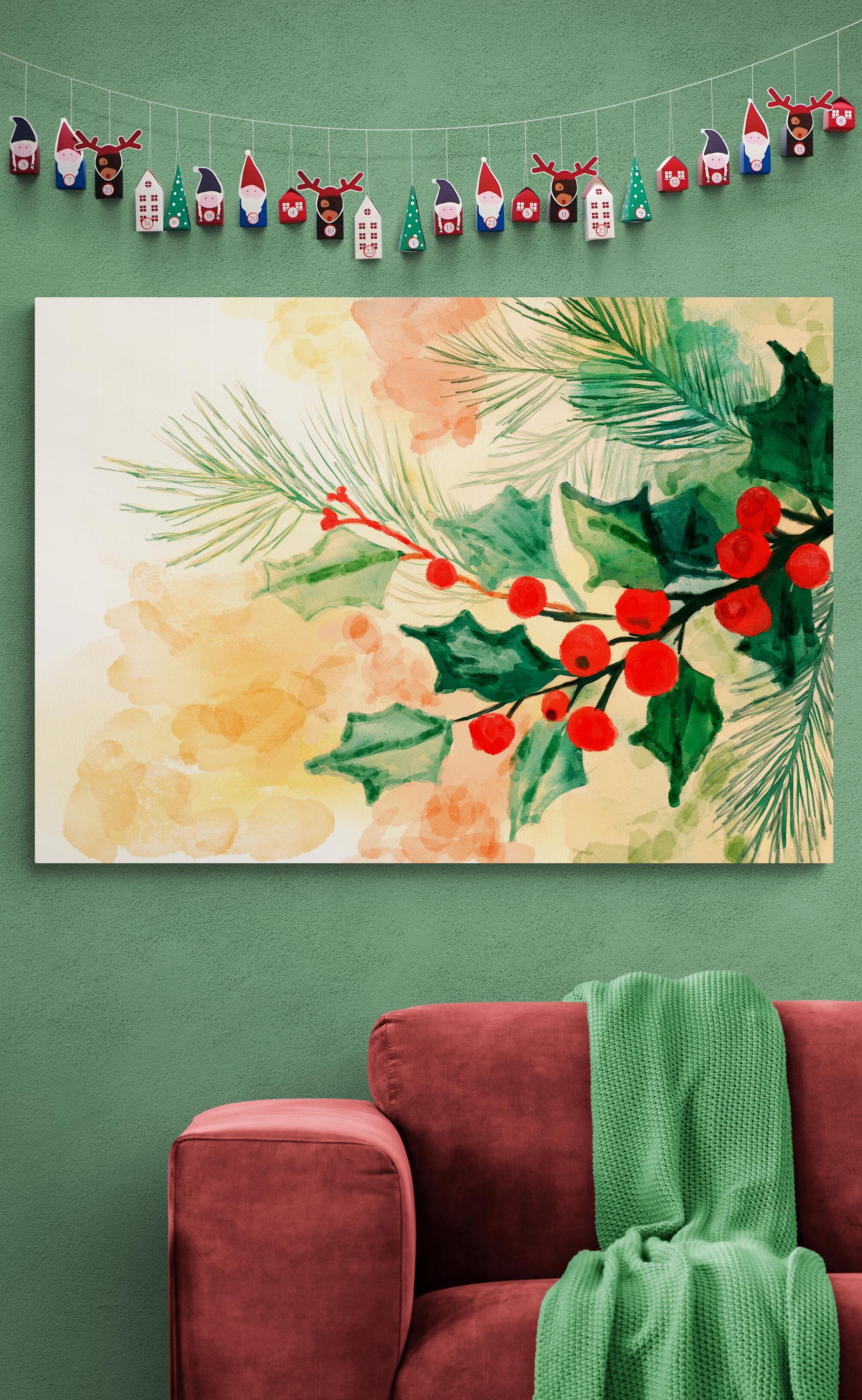 Transform your living space into a holiday wonderland with our enchanting Watercolor Christmas Berries Branches Art collection. Delicately crafted, each piece captures the essence of the season with lush green foliage and vibrant crimson berries, bringing a festive and inviting vibe to your decor. Adorn your walls with the intricate beauty of these art pieces, radiating a sense of warmth and joy throughout your home. Embrace the spirit of the holidays through the detailed brushstrokes and graceful composition that this collection offers. Elevate your interior aesthetic with a touch of nature-inspired charm and celebrate the magic of the season with these stunning artworks.