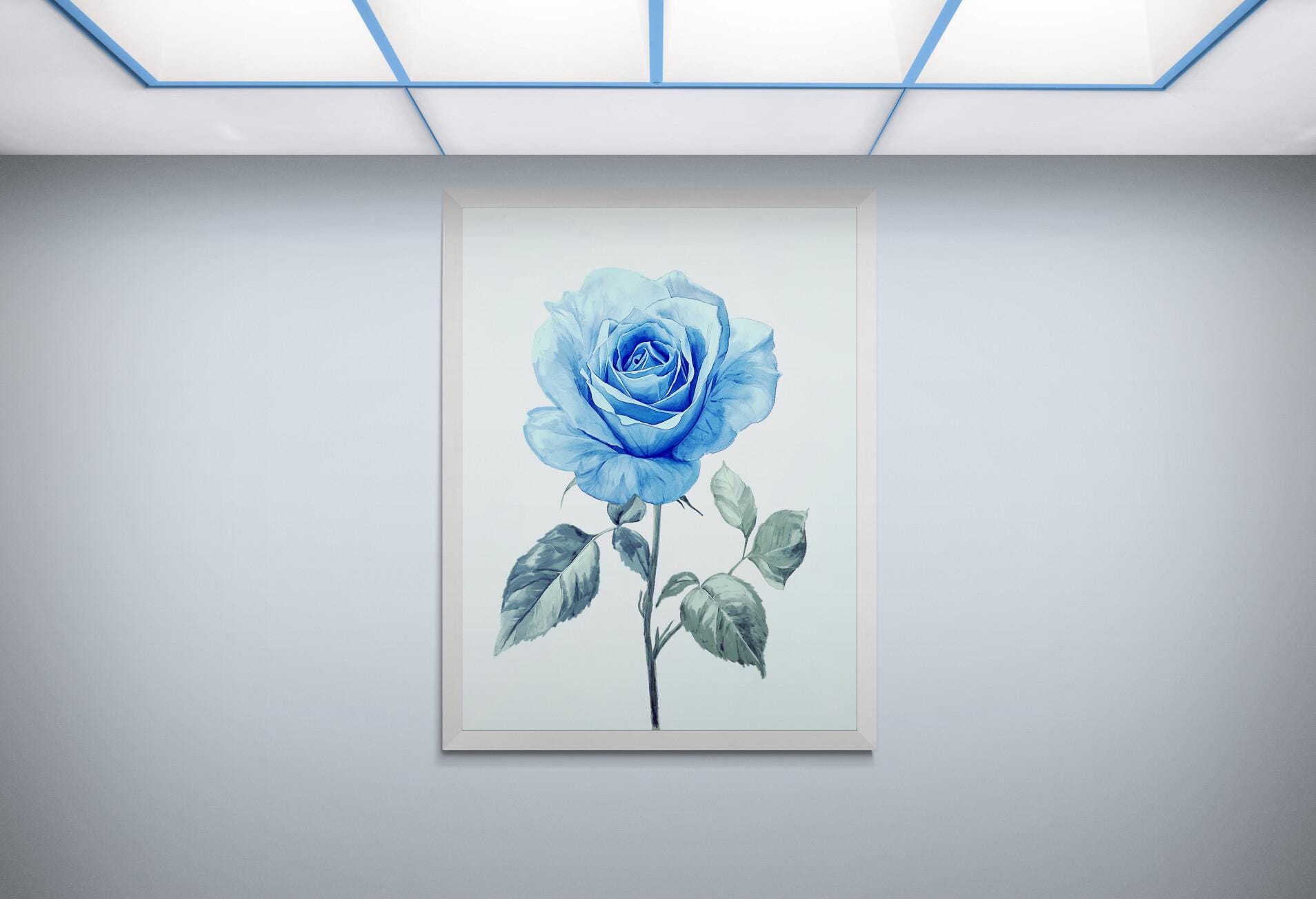 Adorn your walls with the exquisite charm of this watercolor blue rose painting, an artful masterpiece that exudes timeless elegance. The delicate strokes capture the beauty of nature with a serene touch, making it a perfect addition to any room. This floral art print breathes new life into your space, infusing it with a sense of tranquility and sophistication. The soft hues of blue and the intricate detailing of the rose petals create a captivating visual experience that is both soothing and captivating. Transform your walls into a gallery of beauty with this enchanting piece that will surely become a focal point in your decor. Let this watercolor blue rose painting spark joy and evoke a sense of serenity every time you gaze upon its ethereal beauty.