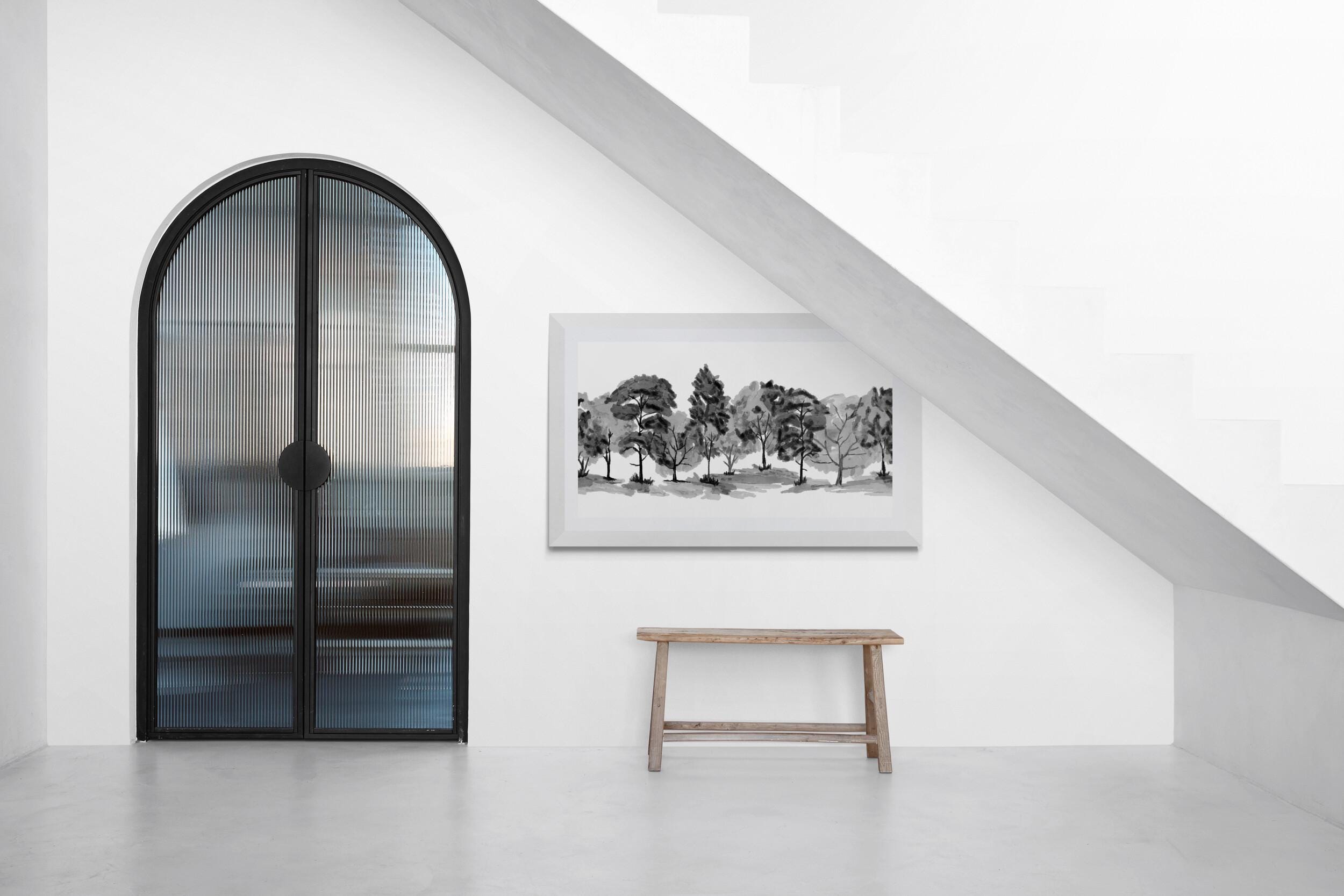 In this captivating artwork, a monochrome autumnal scene comes to life with the subtle beauty of a silhouette grove. Delicate trees and shrubs peek out amidst the serene backdrop, evoking a sense of tranquility and nostalgia. The contrast of light and dark creates a mesmerising effect, drawing the viewer into a world where nature's enchantment reigns supreme. Each element in the composition tells a silent story of the changing seasons and the magic of fall. Immerse yourself in this picturesque setting and let the essence of autumn embrace you in its graceful allure. This piece is a timeless tribute to the harmony and elegance found in the simplicity of nature's design.