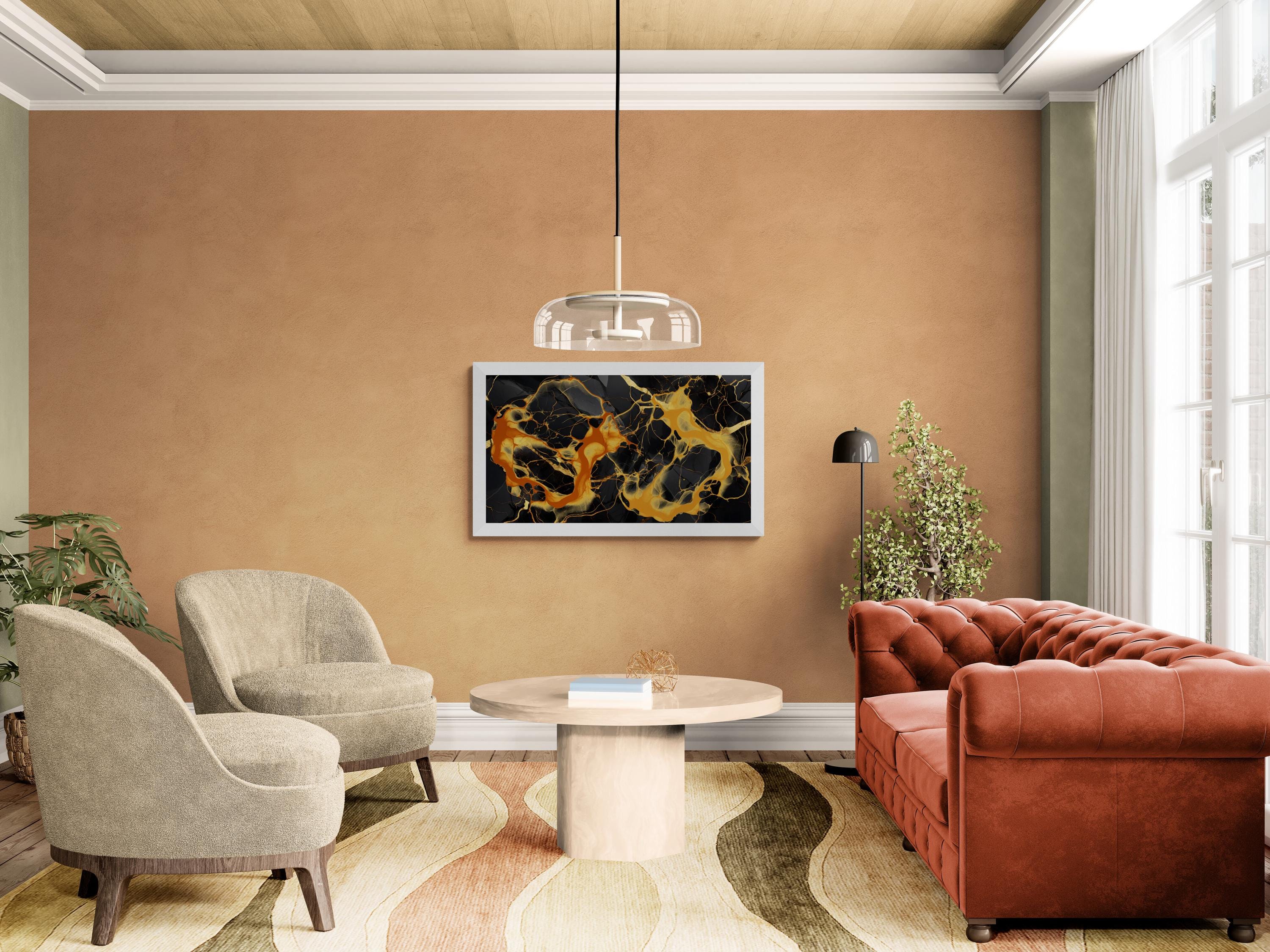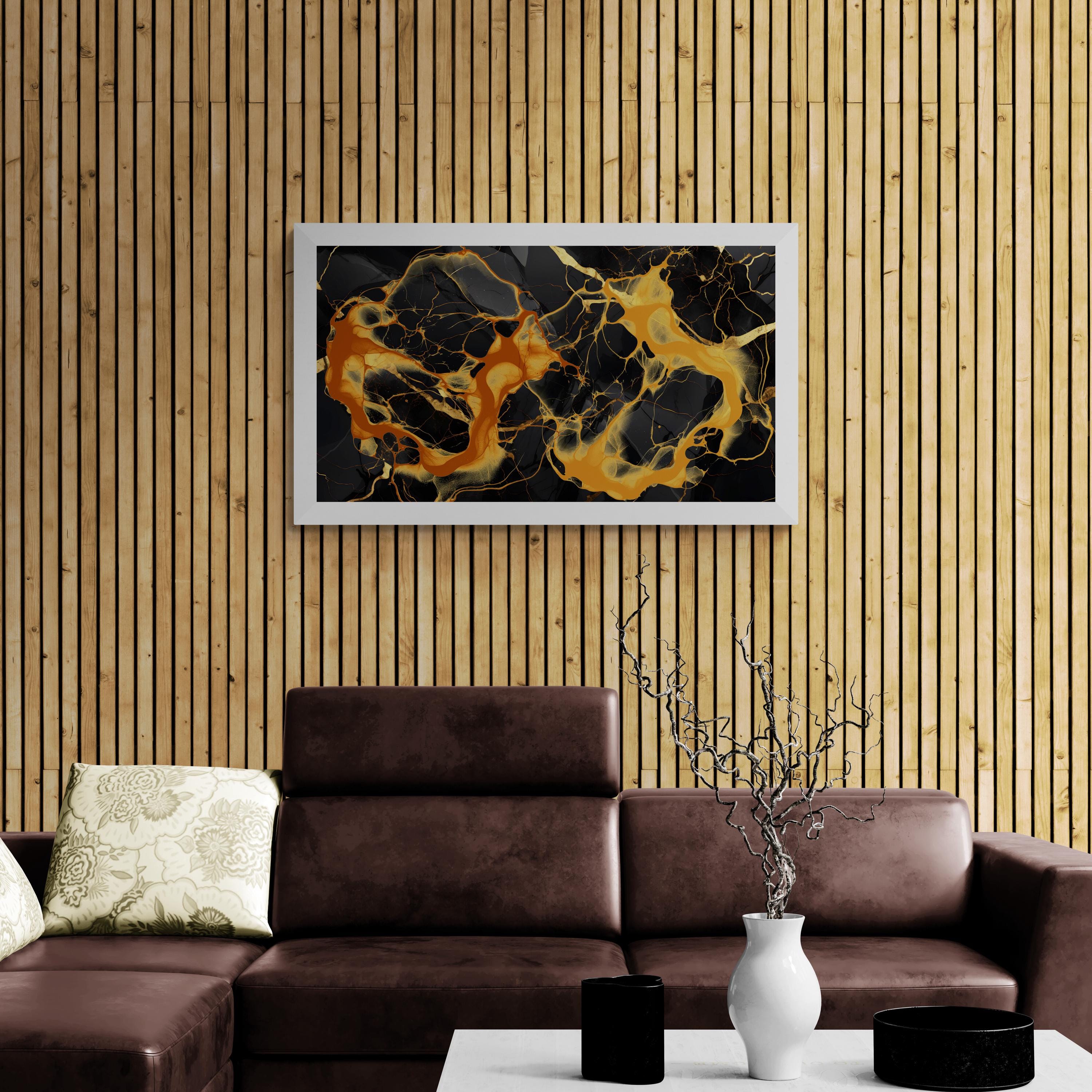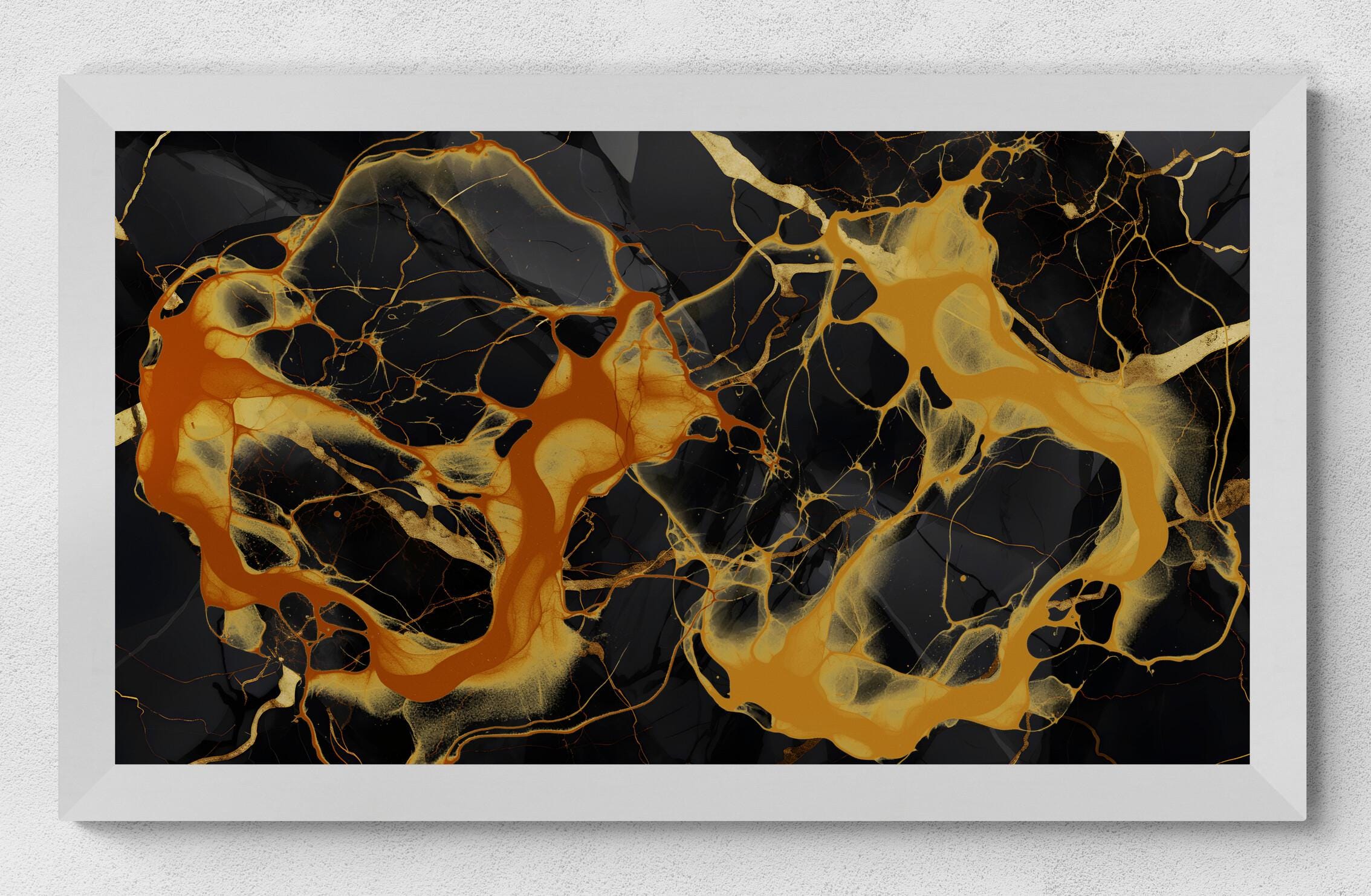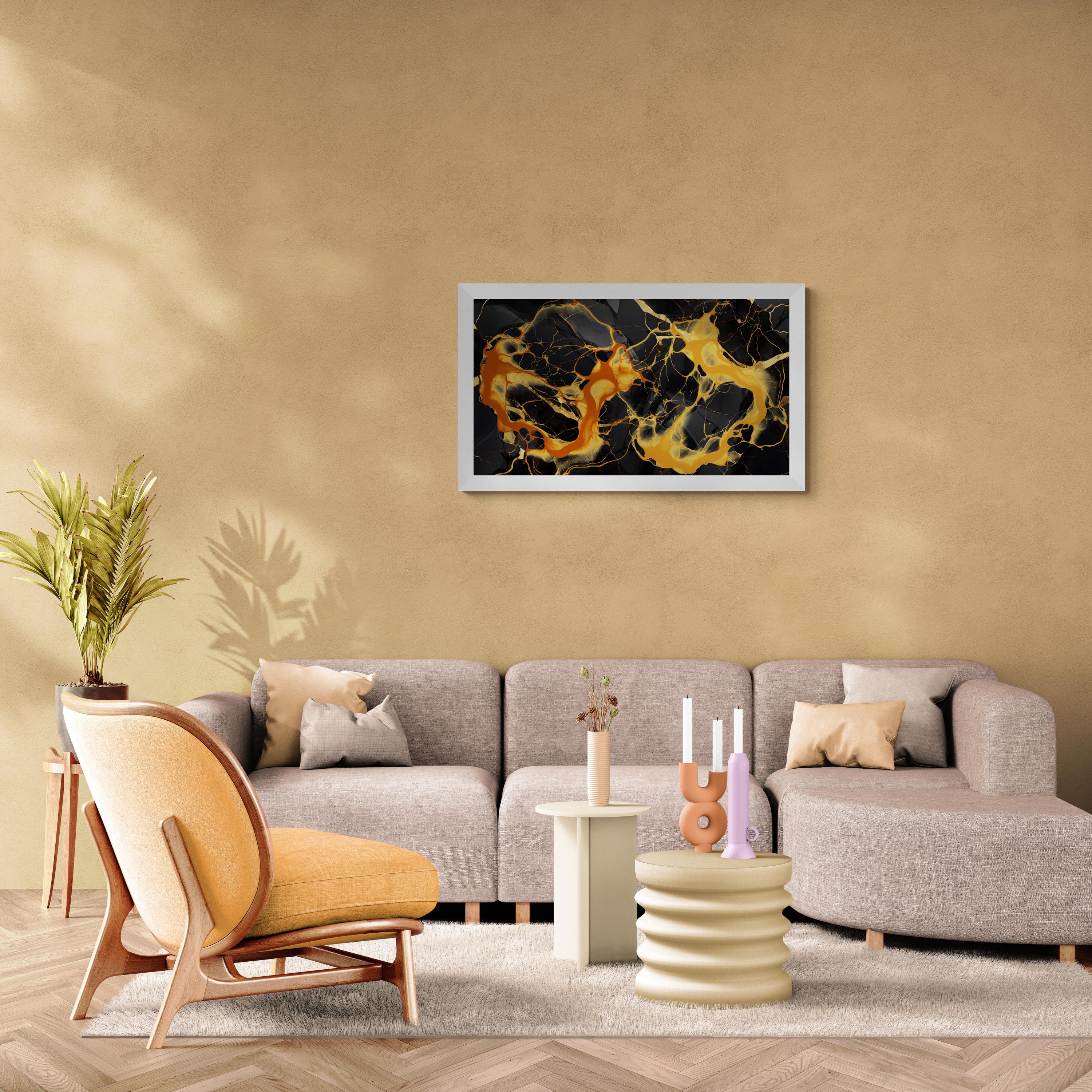 Crafted with finesse and creativity, this captivating artwork showcases a mesmerising abstract composition in rich metallic gold and vibrant orange hues on a black background. Each stroke and swirl come together harmoniously, bringing a sense of depth and movement to the piece. Created using the intricate technique of alcohol ink, the colors blend seamlessly, evoking a sense of energy and warmth. This artwork is a true feast for the eyes, inviting viewers to delve into its intricate details and unique textures. Add a touch of sophistication and elegance to your space with this stunning creation that promises to be a focal point in any room. Embrace the beauty of abstract art and let this piece spark conversations and inspiration in your home or office.