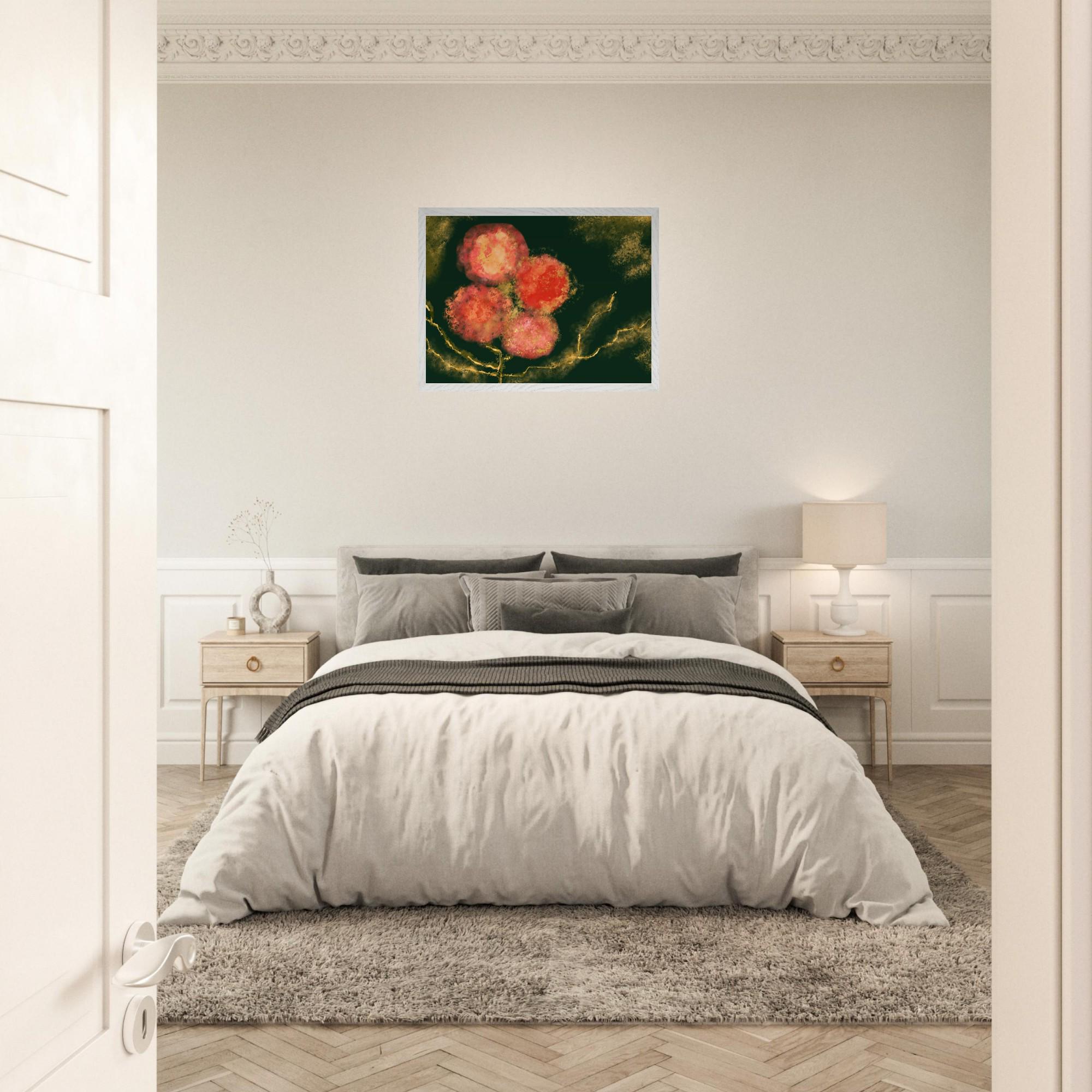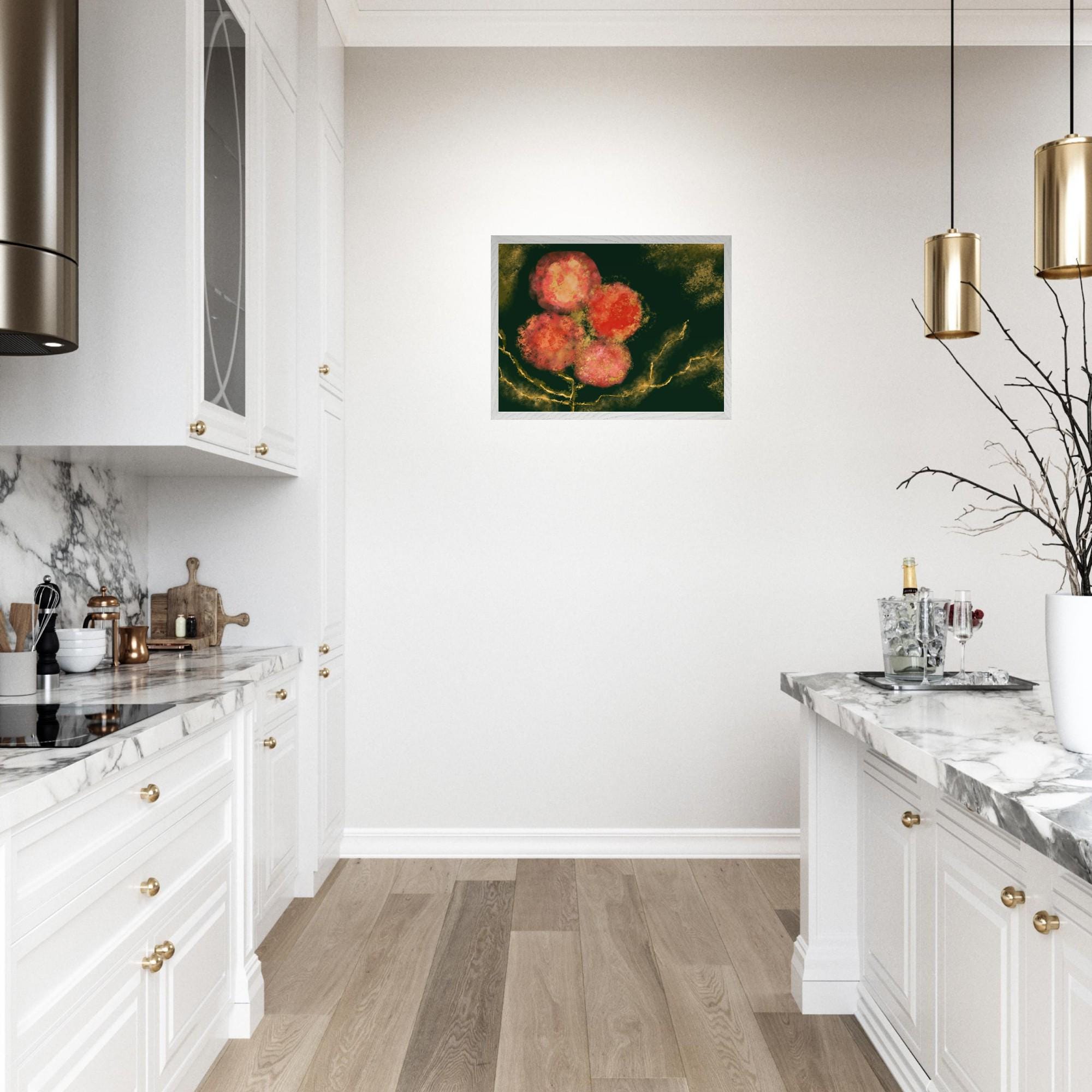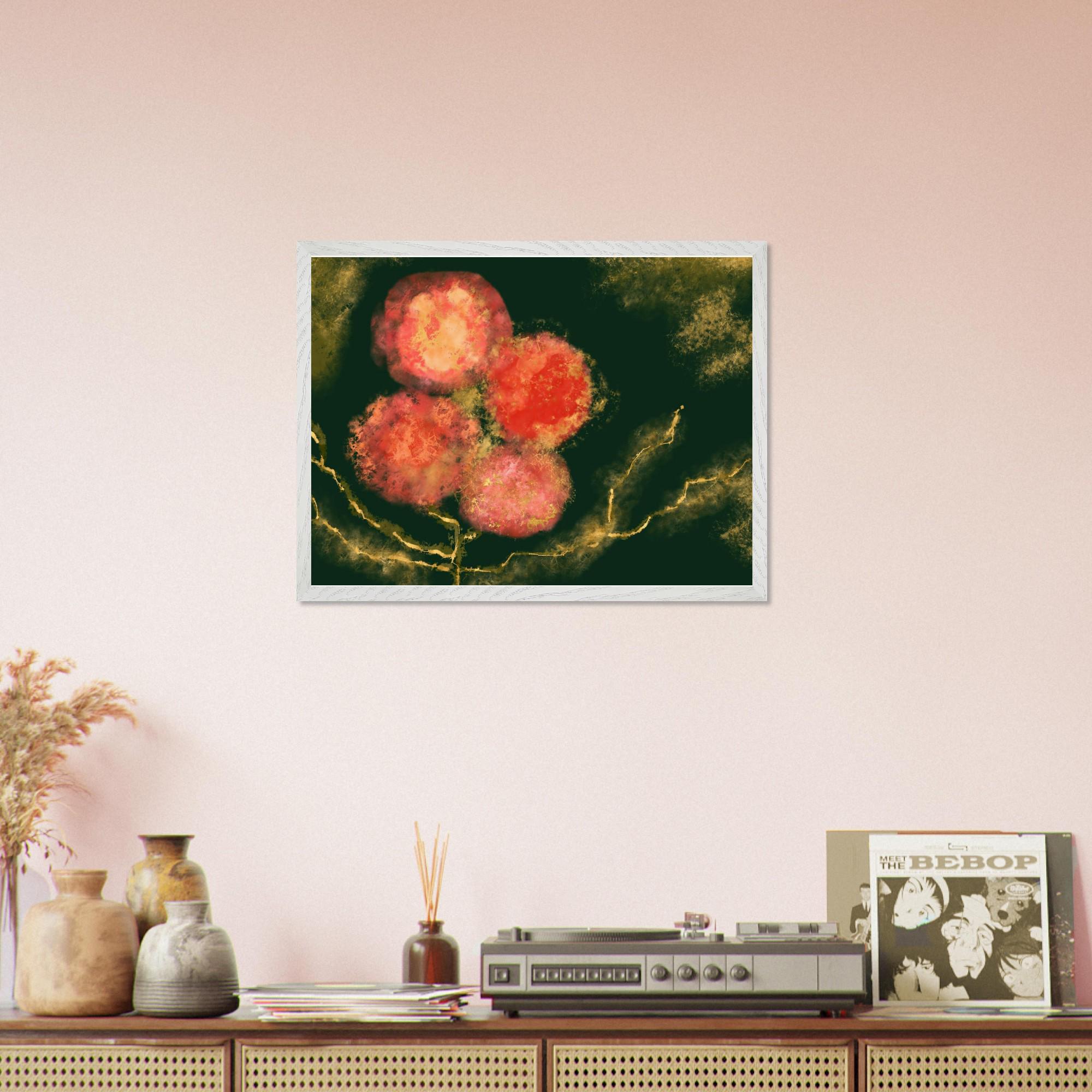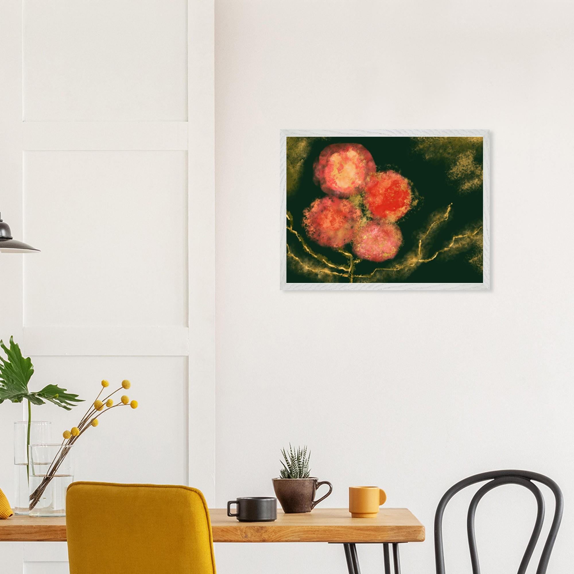 Vibrant Abstract Floral Poster - Mounted Framed Art - 20x25 cm