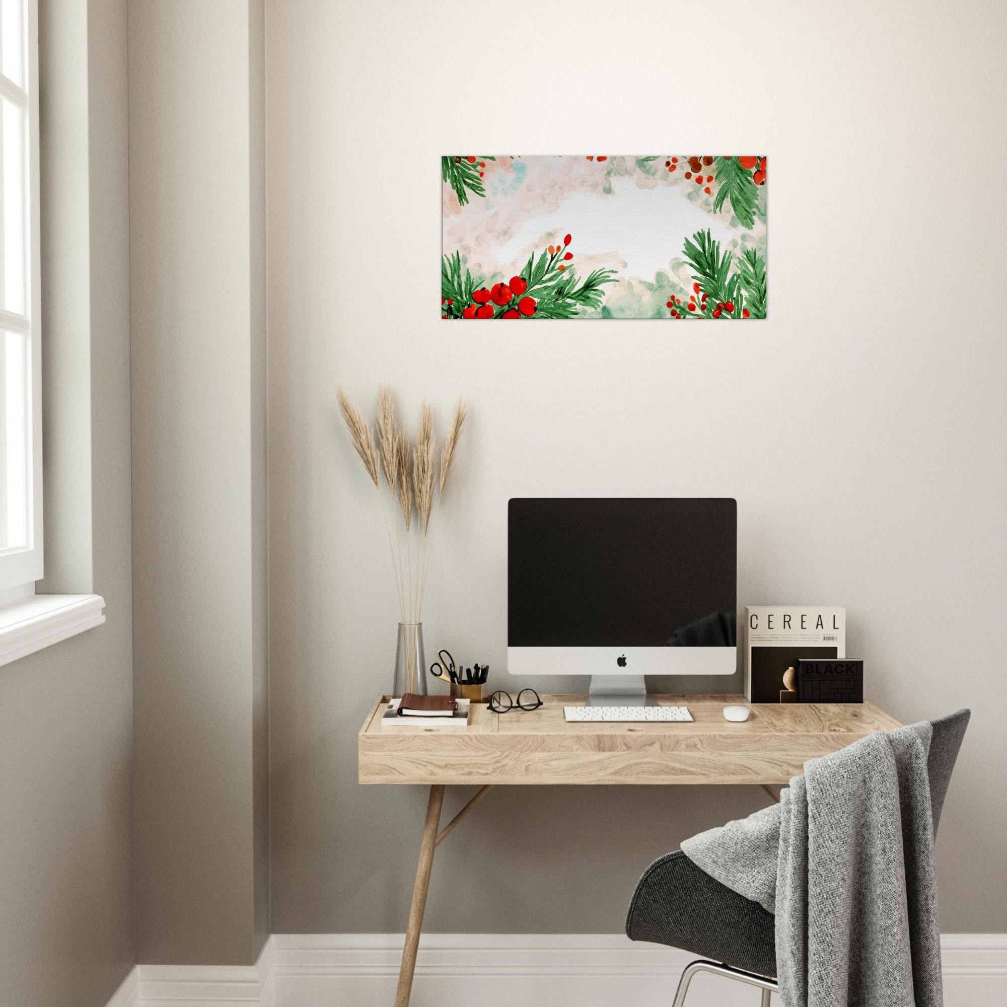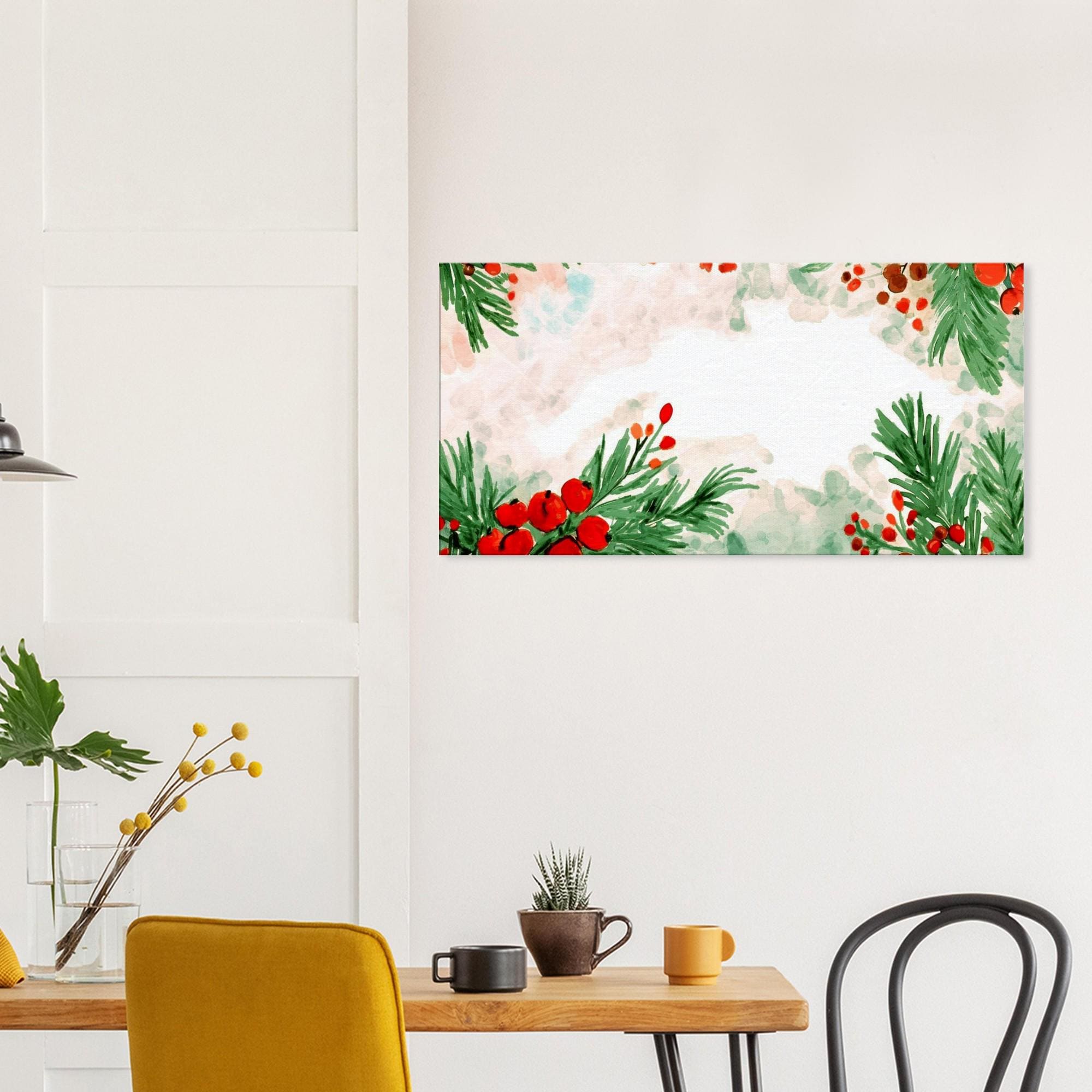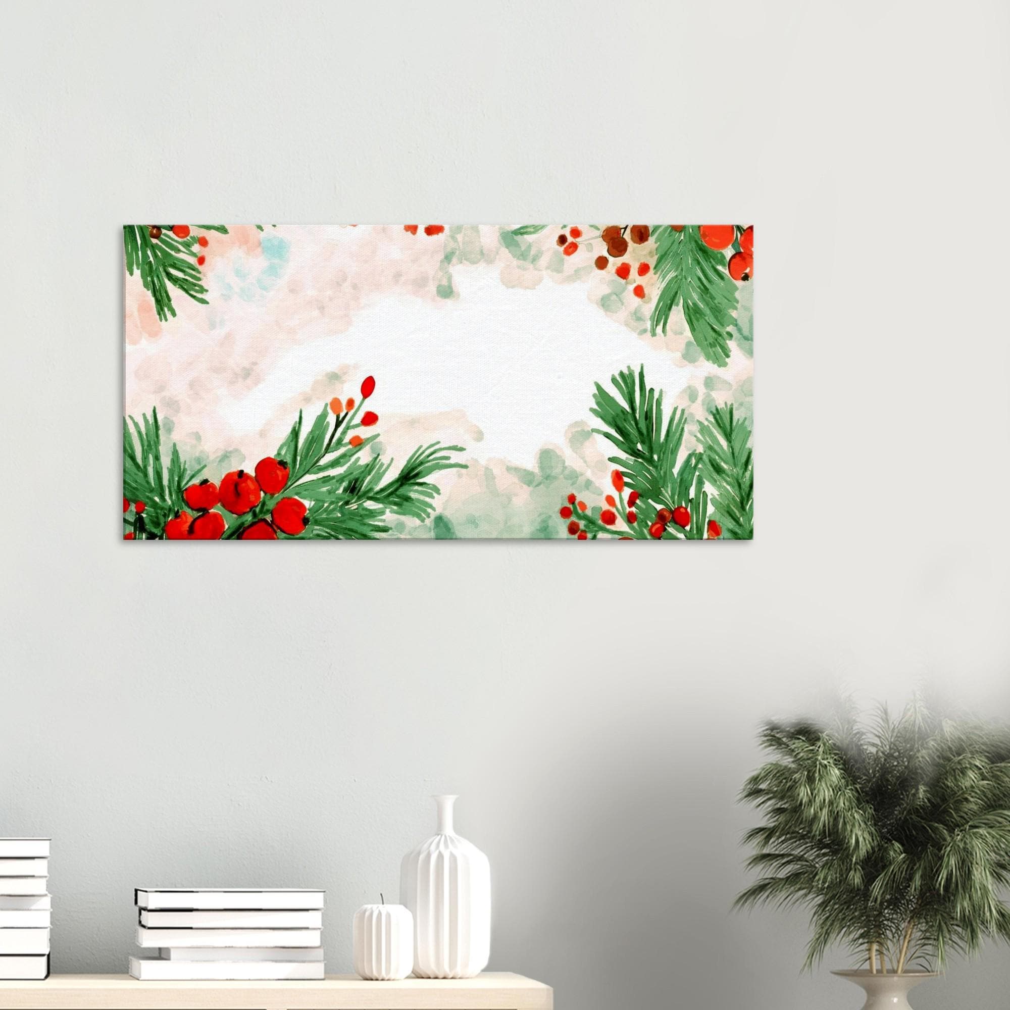 Watercolor Christmas Berries Canvas Art - Holiday Wall Decor - 50cm x 100cm