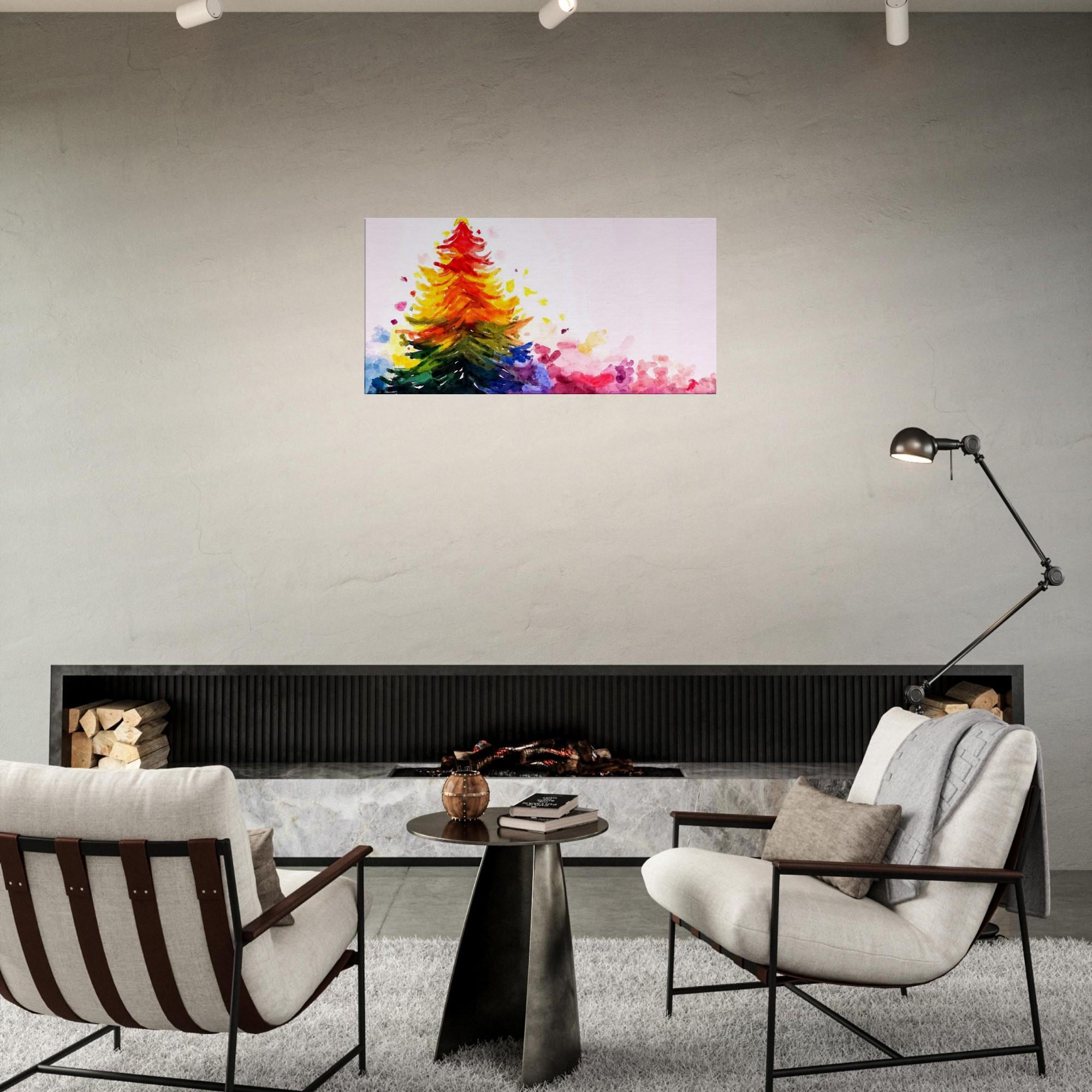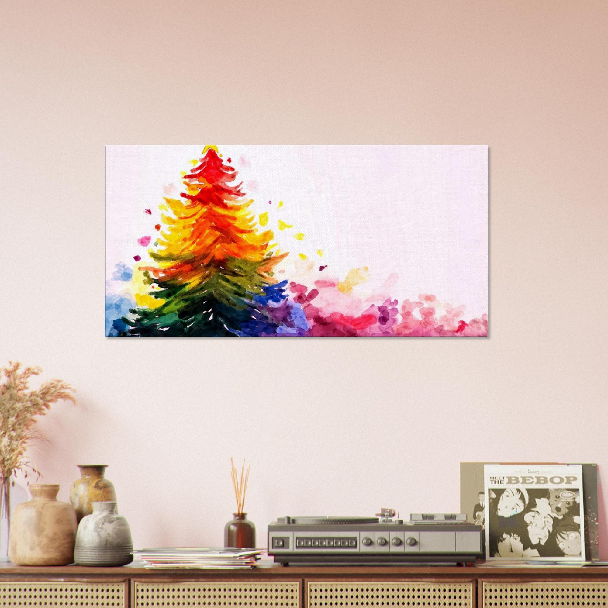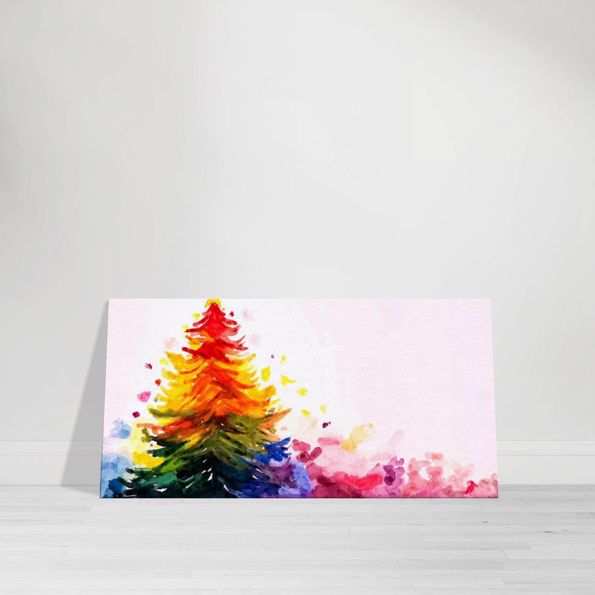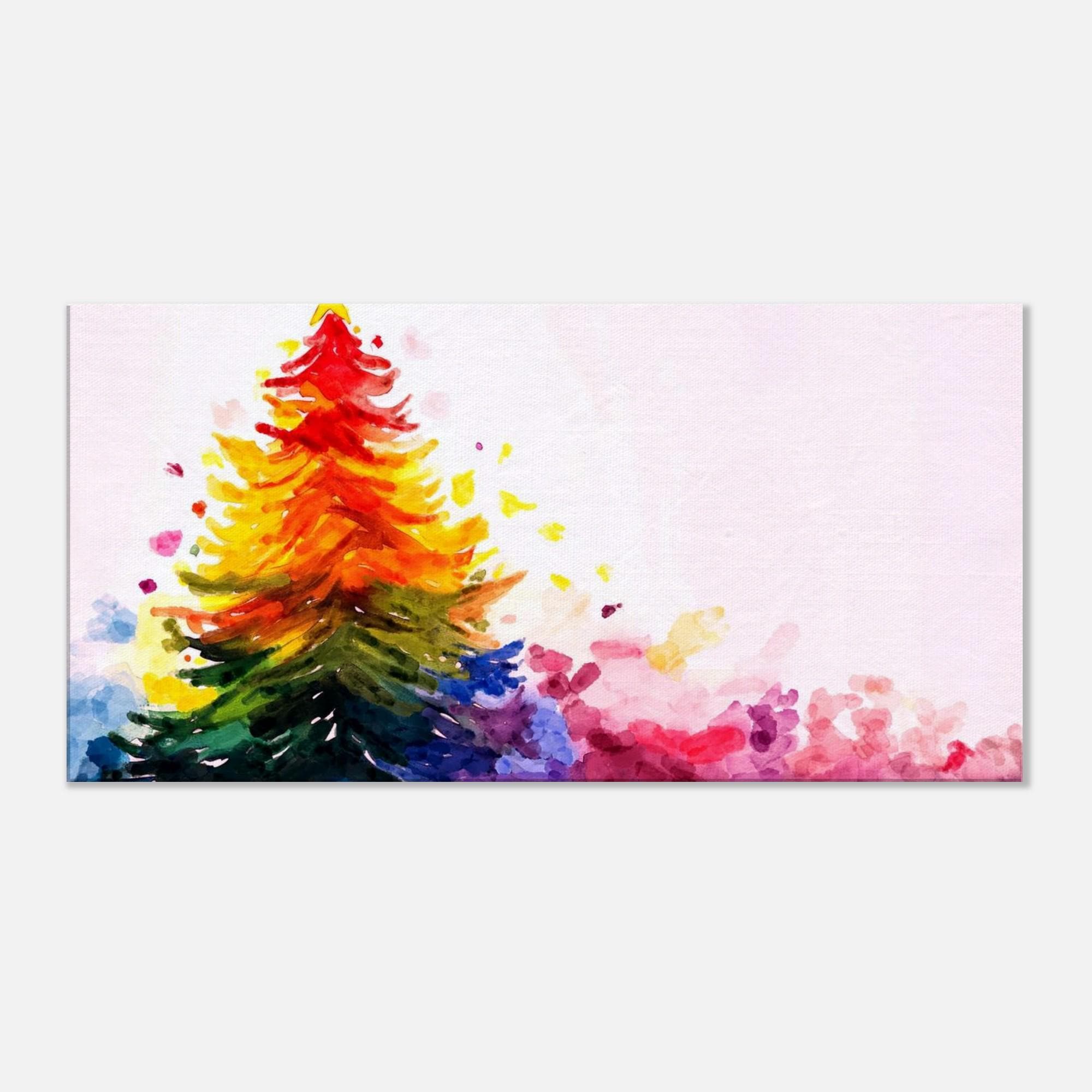 Vibrant Christmas Tree Watercolor Canvas - 50cm x 100cm