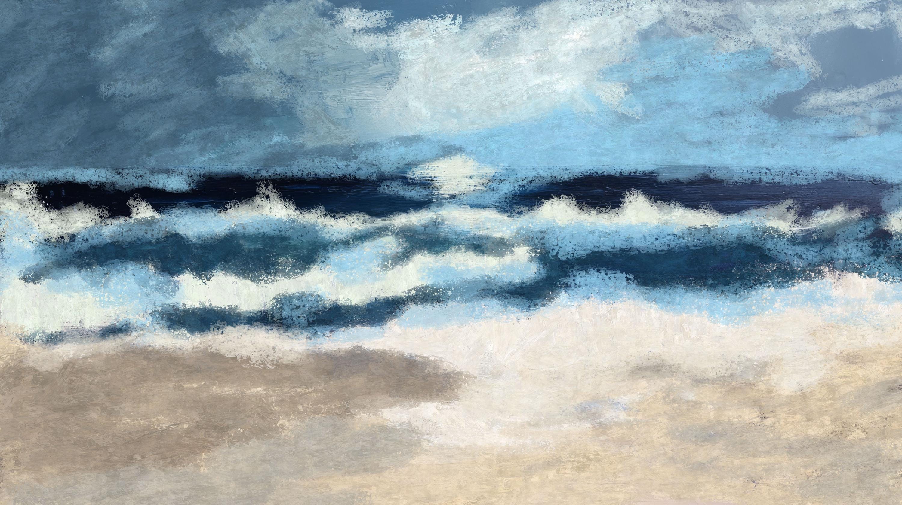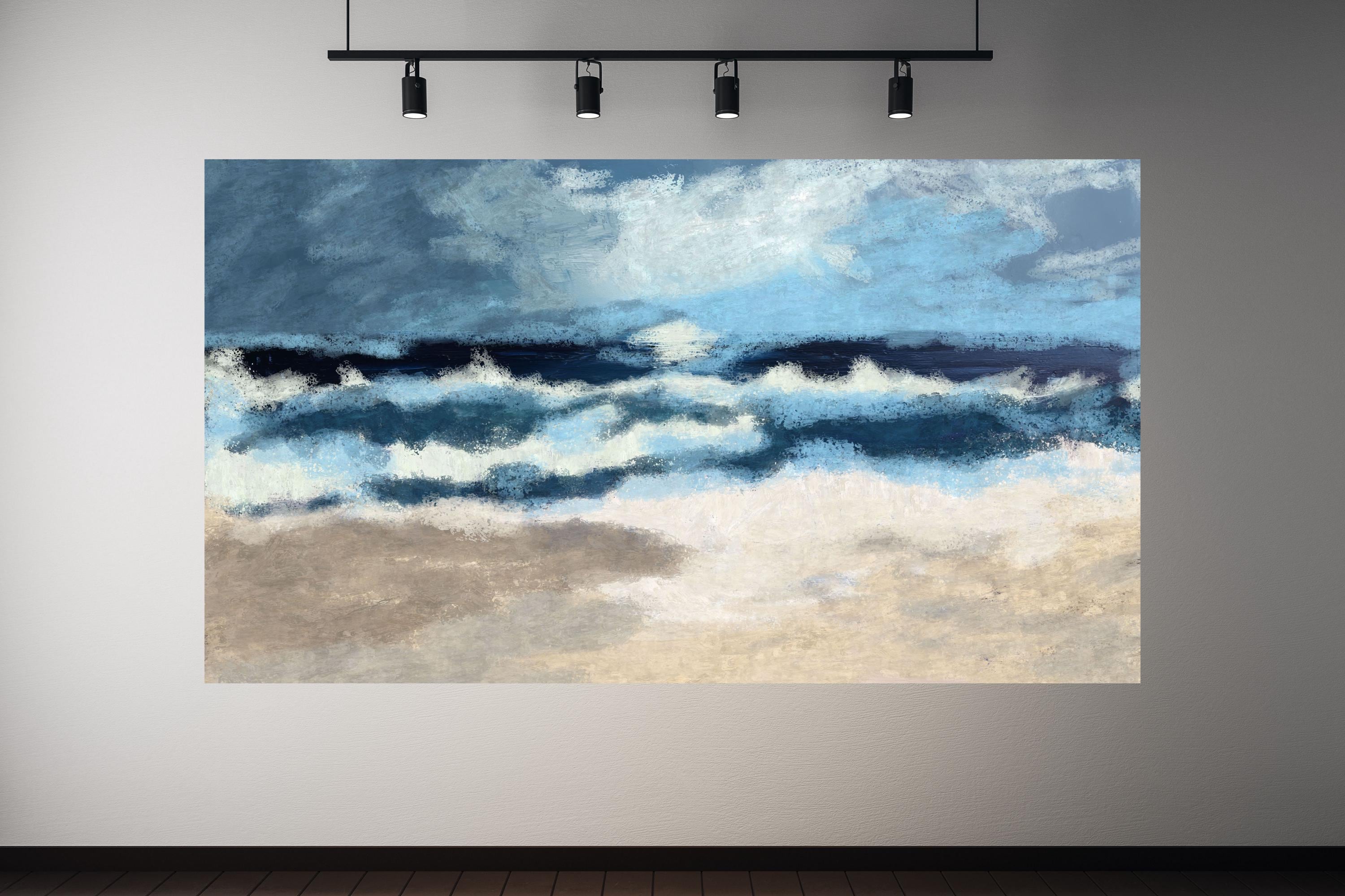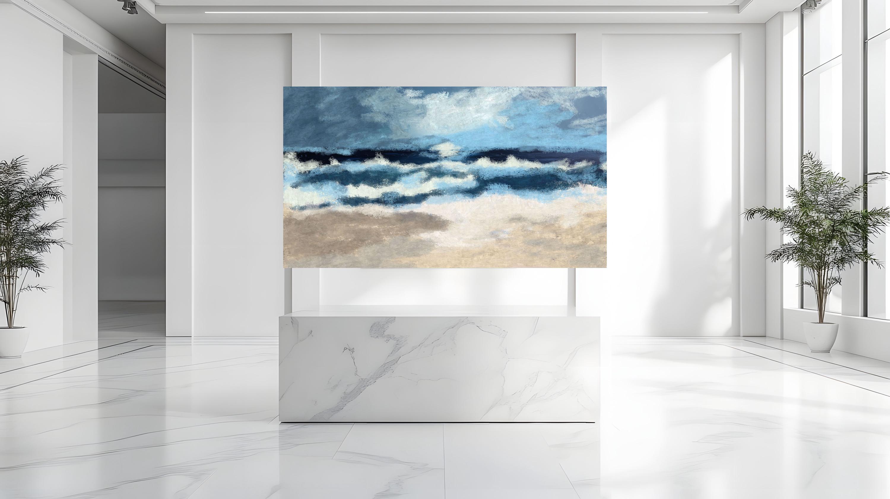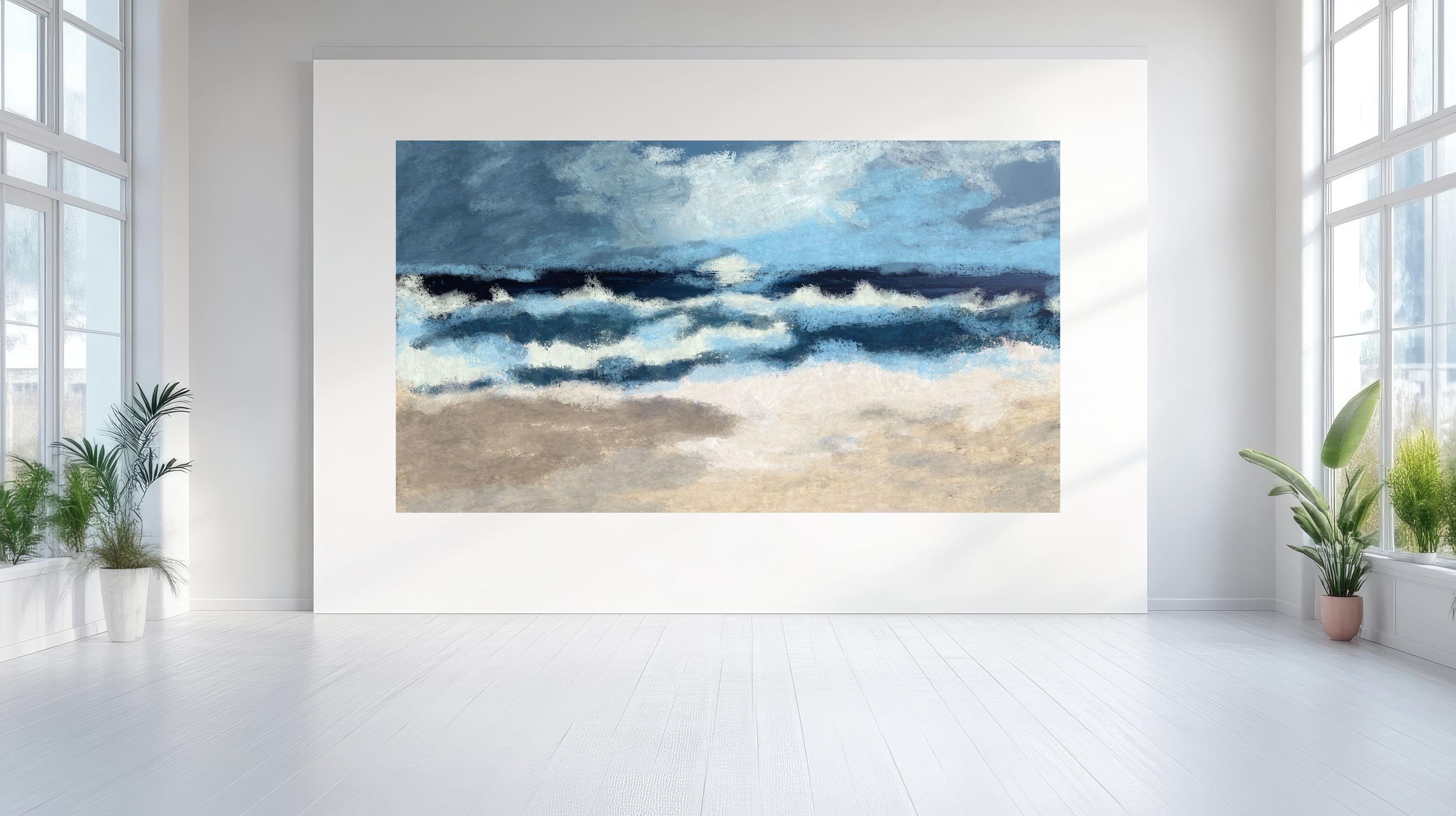 A bold, modern seascape fading into deep indigo and black, painted with cool blues, turquoise, and white. Textured palette knife strokes create movement and depth, evoking moonlit waves and a quiet horizon. Perfect for coastal wall art, ocean lovers, and contemporary home décor.