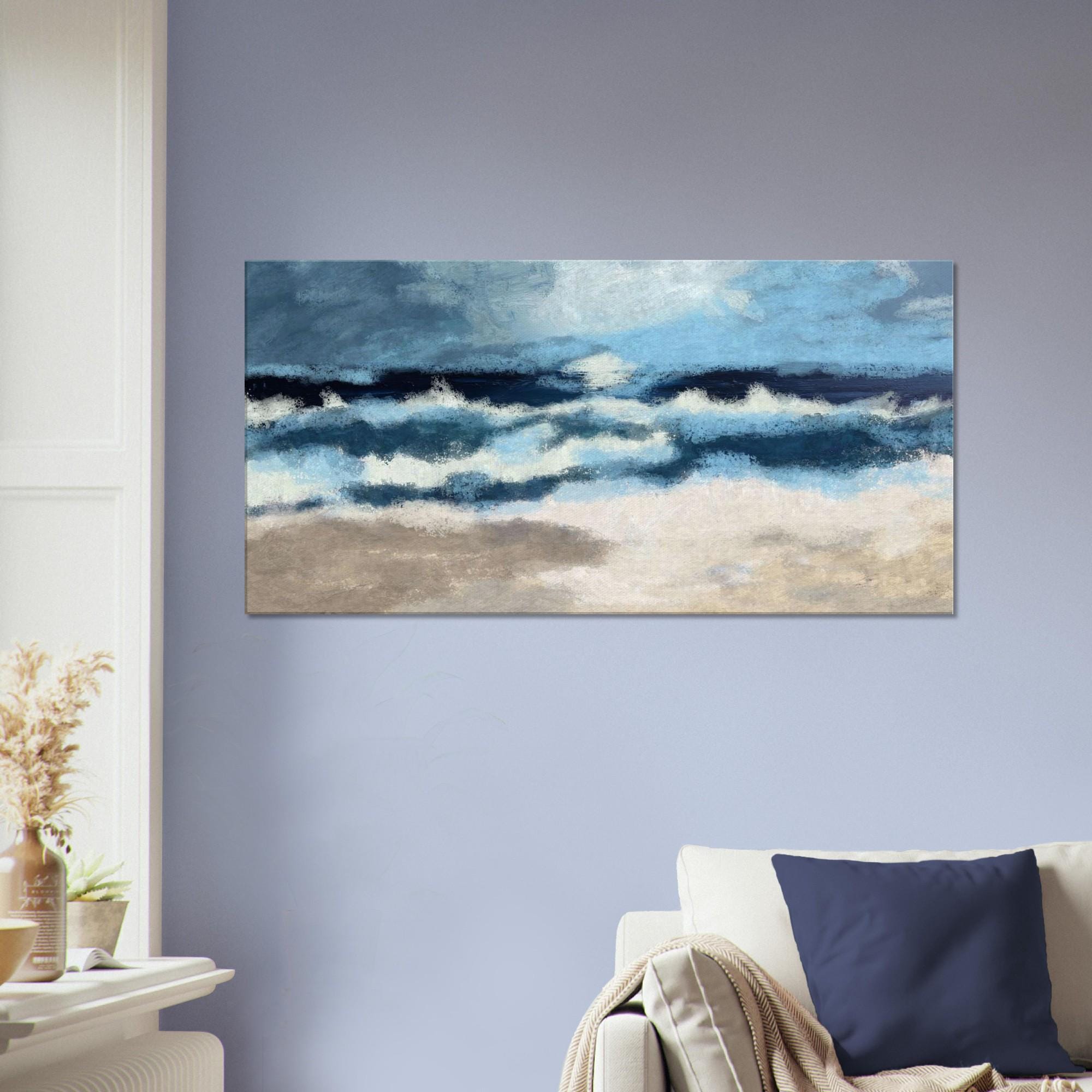 Perfect for ocean lovers and those seeking a calm, inspiring atmosphere, this canvas is adaptable to a variety of settings, whether you're enhancing a living room or creating a serene bedroom retreat. A beautiful focal point for galleries, hallways, or above a cozy sofa – wherever it hangs, this artwork will breathe life and elegance into your surroundings.